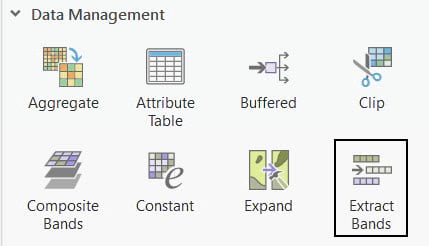 1. Use the Raster Function Extract Bands to separate the NAIP imagery into Band 1 (Red), Band 2 (Green), and Band 3 (Blue) rasters.