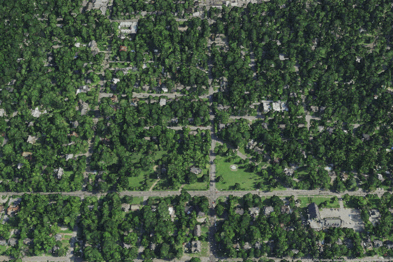 The first goal was to create some “drone-like” flyover animations, to juxtapose the presence of trees in different HOLC grades at a bird’s-eye view. To do this, we used the RGB information present in the point cloud to render the 3D points so they appeared as a continuous surface. But what if you don’t have RGB information in your Lidar? Don’t despair! Take a short trip to this Esri blog post to learn how to colorize and transform your drab, colorless Lidar using NAIP imagery in ArcGIS Pro – from a city to an entire state. It’s an easy way to create a “3D basemap” to add real-world context to your projects.
