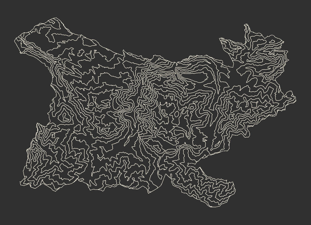 I wanted to make a map that highlighted the pronounced elevation gain of Picos de Europa National Park – and what better way to do that than with contours.