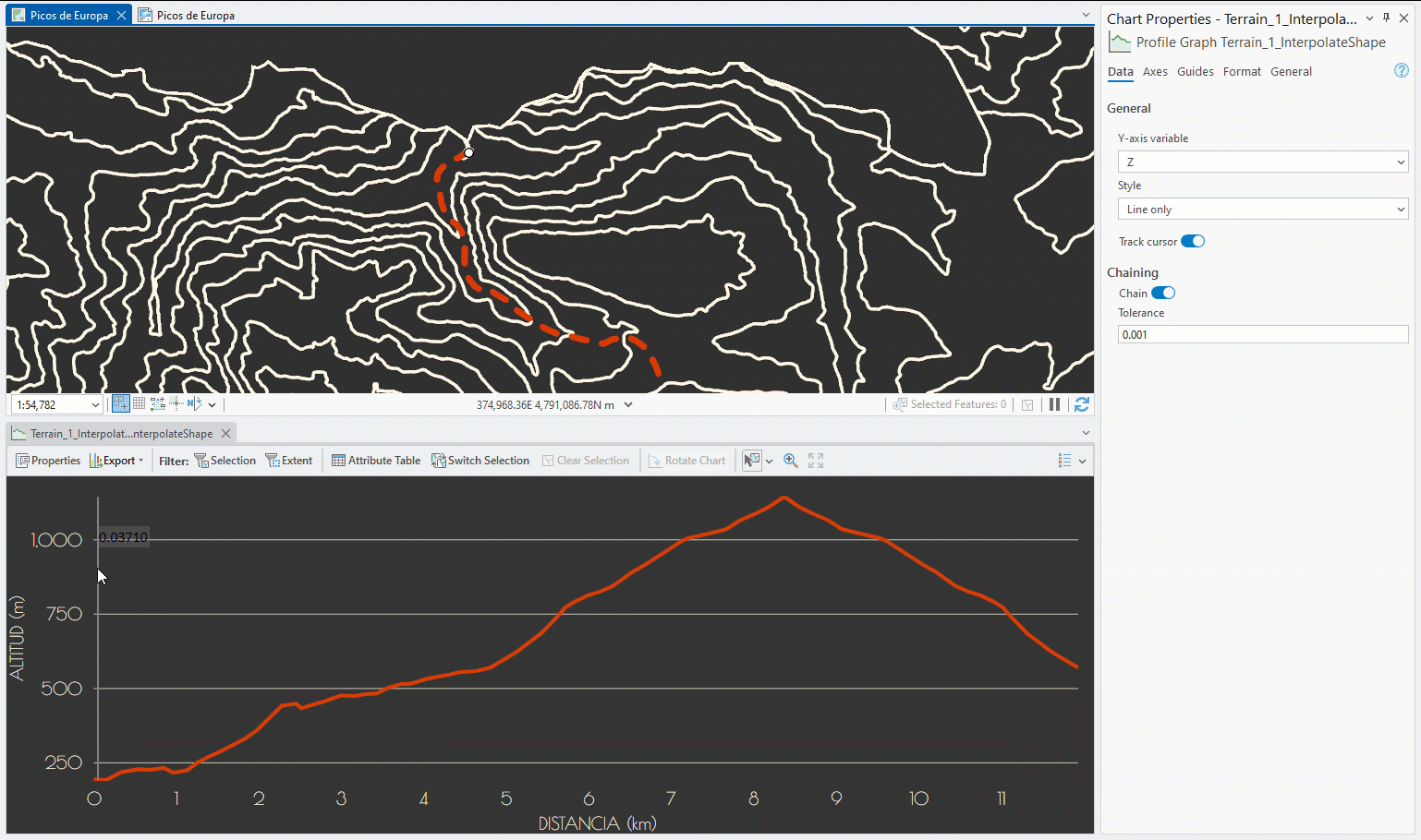 Also in the Charts Properties pane, I used the new Track cursor toggle to interactively see the level of elevation at each point on the trail as it goes up and down the mountain. Although not directly related to the map itself, this option was great for showing everyone how much I had already hiked when the cows started following me – I’m really fun at parties.