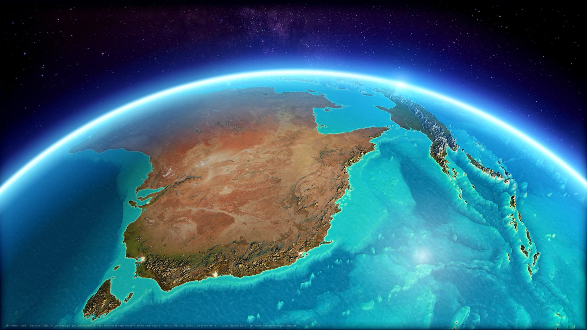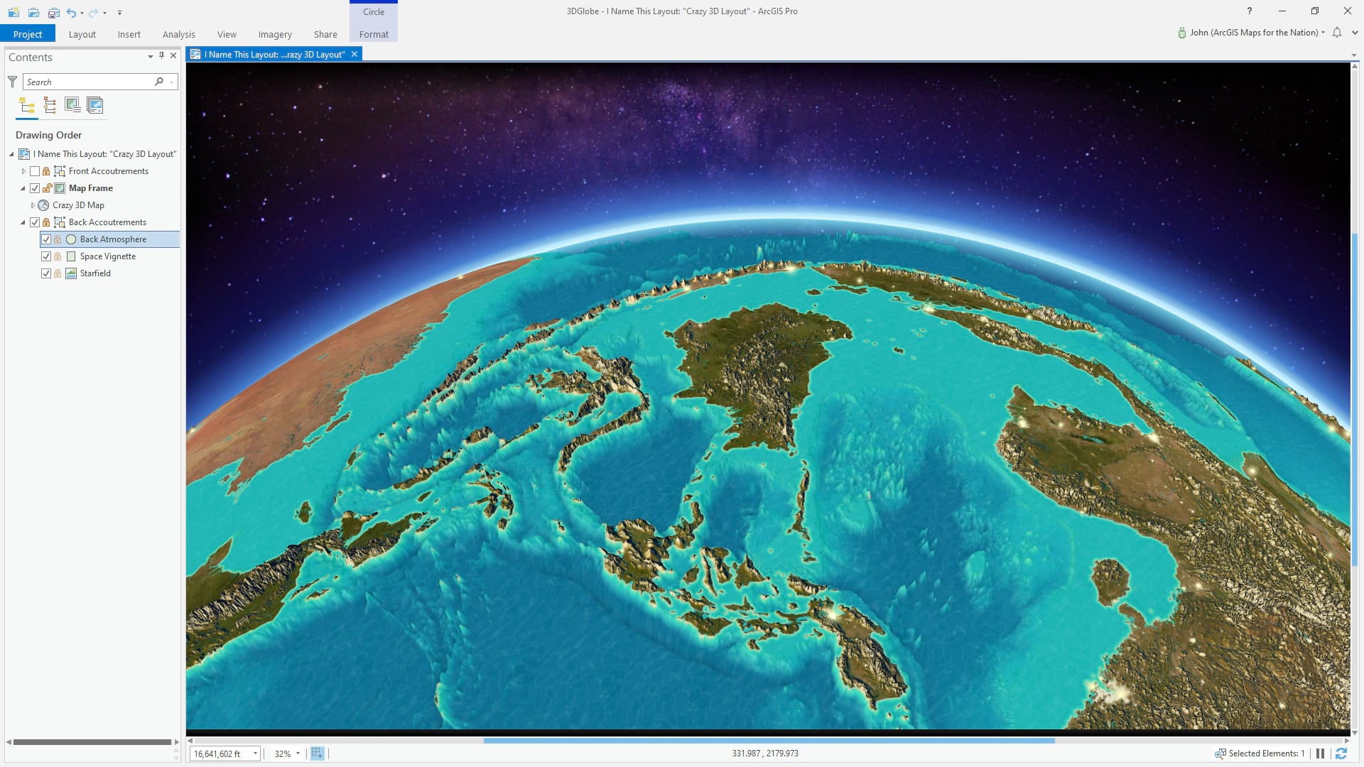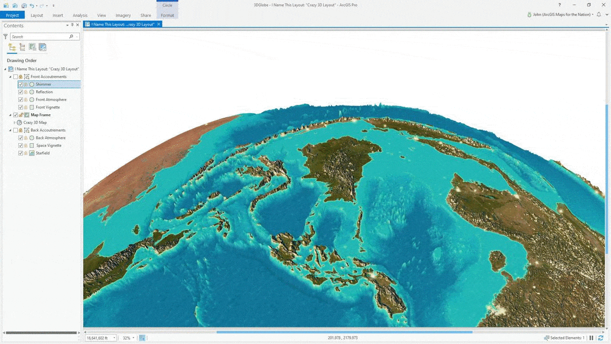 In part 1 we walked through the steps of bringing in some imagery and incredible elevation, and making a luscious exaggerated 3D globe (with real data!). Now we are going to give that globe a cozy over-the-top atmosphere to nestle right into. Are you ready to suspend your scientific mind’s disbelief? I hope so because we are going to fake an insane (and, I’ll admit it: static) global atmospheric effect…