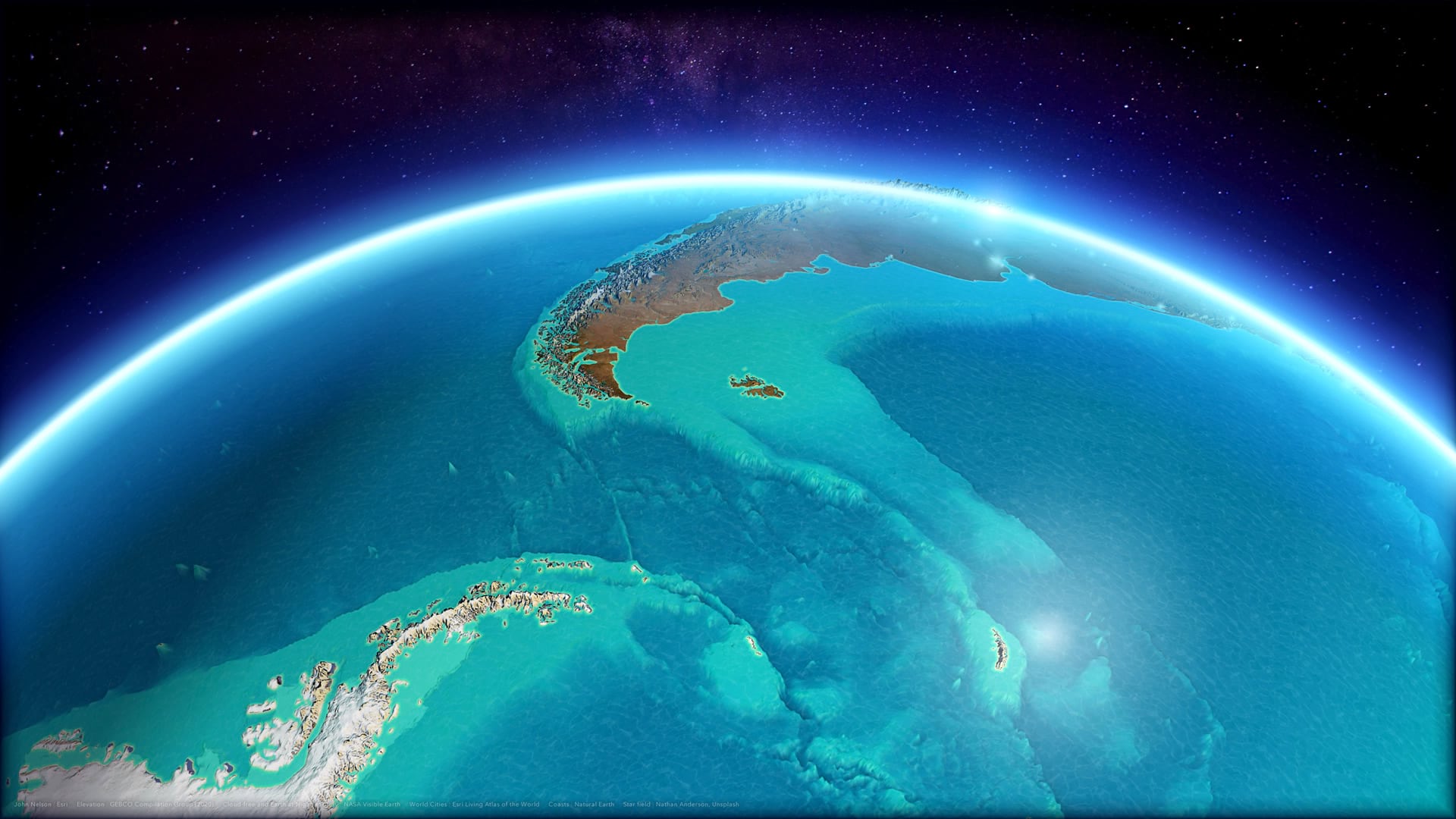 Now there is a wonderful little layer of air blanketing the background of the globe. This is a nice effect for heavily exaggerated terrain because it (depending on your perspective) renders behind very tall mountains to make them appear to be bursting through the lower atmosphere.