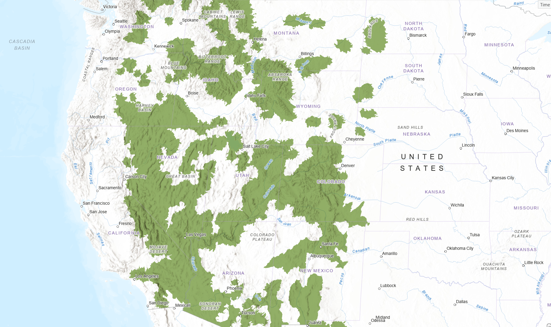 You can find the USGS GAP species range and habitat source data at the GAP website data page here [https://www.usgs.gov/programs/gap-analysis-project/data]. We will demonstrate the workflow using the USA Bighorn Sheep range data and a 30-meter land cover raster dataset from Living Atlas as a template. However, this workflow is easily adapted for other vector features and raster sizes.