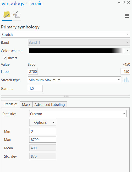 Adjust the symbology by modifying the colour scheme, inverting the ramp, and changing the statistics (I adjusted the min value so the water would be white).
