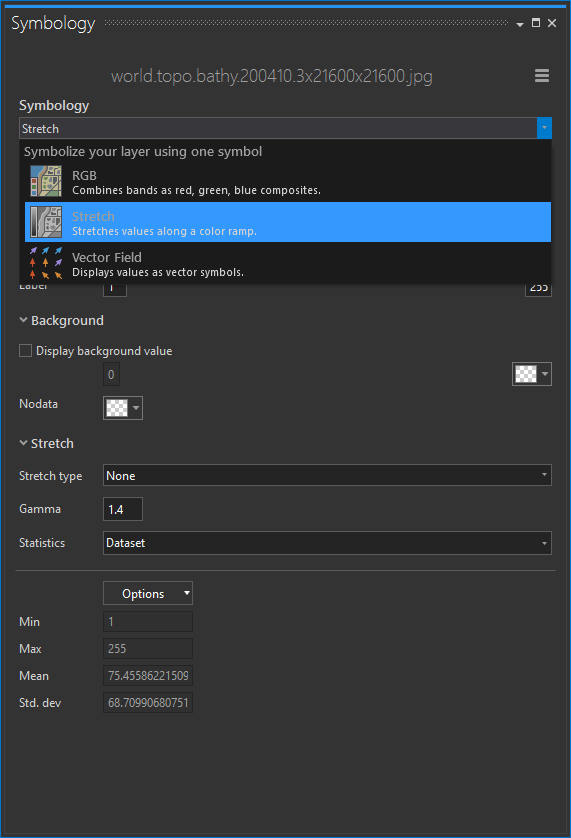 Side note: If you don’t have the dark theme (cue Vader breathing) activated in ArcGIS Pro, you are missing out on some sweet sweet goodness. So much easier on the eyes. If you are designing visual products then a muted, receding, interface like this is a helpful context that promotes the priority of content over interface. Plus if you’re working on a screen all day your eyeballs will thank you.