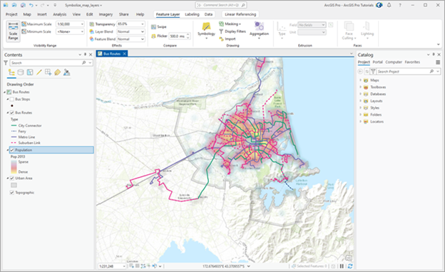 I recommend starting with the “Introducing ArcGIS Pro” tutorial; this provides insight into the layout of the application. You’ll explore the main components of the ArcGIS Pro user interface—the Ribbon, Views, and Panes — and learn about the contextual nature of ribbon tabs. For example, if you are going to start editing data, new tabs and menu options will appear on the ribbon.