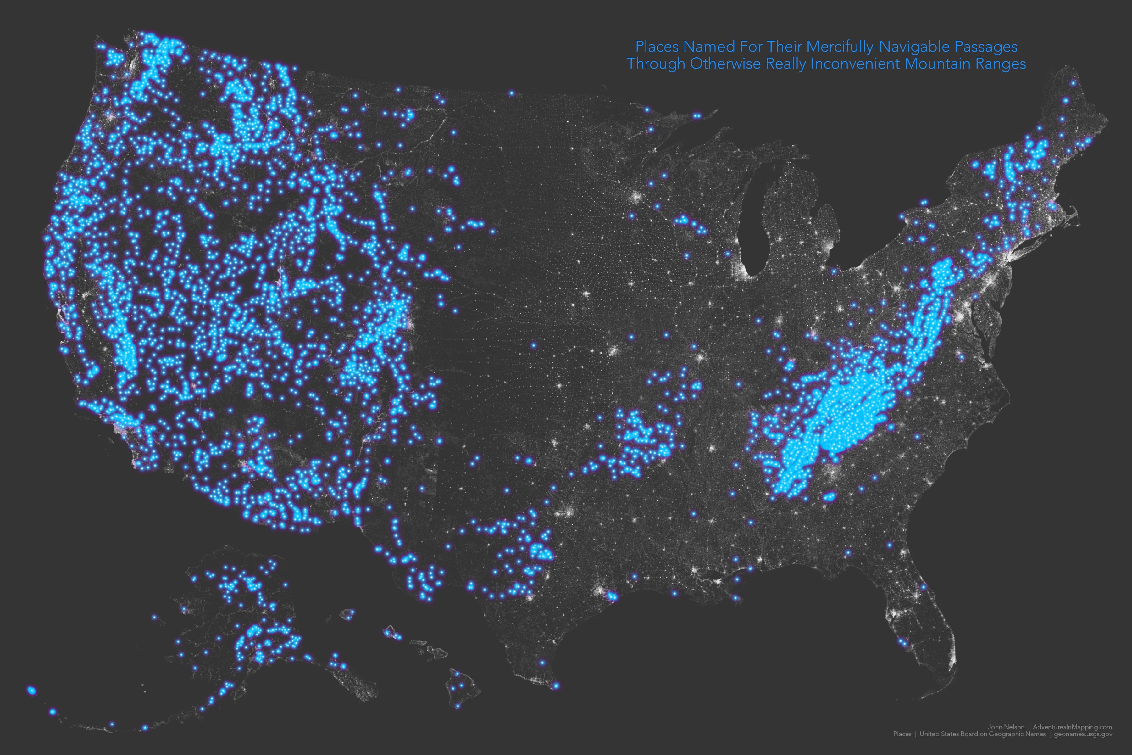 For example, if you were an old-time settler traveling west (and naming stuff as you went, I suppose), you’d definitely keep an eye peeled for mercifully-navigable passages through otherwise really inconvenient mountain ranges. You know, these sorts of things…