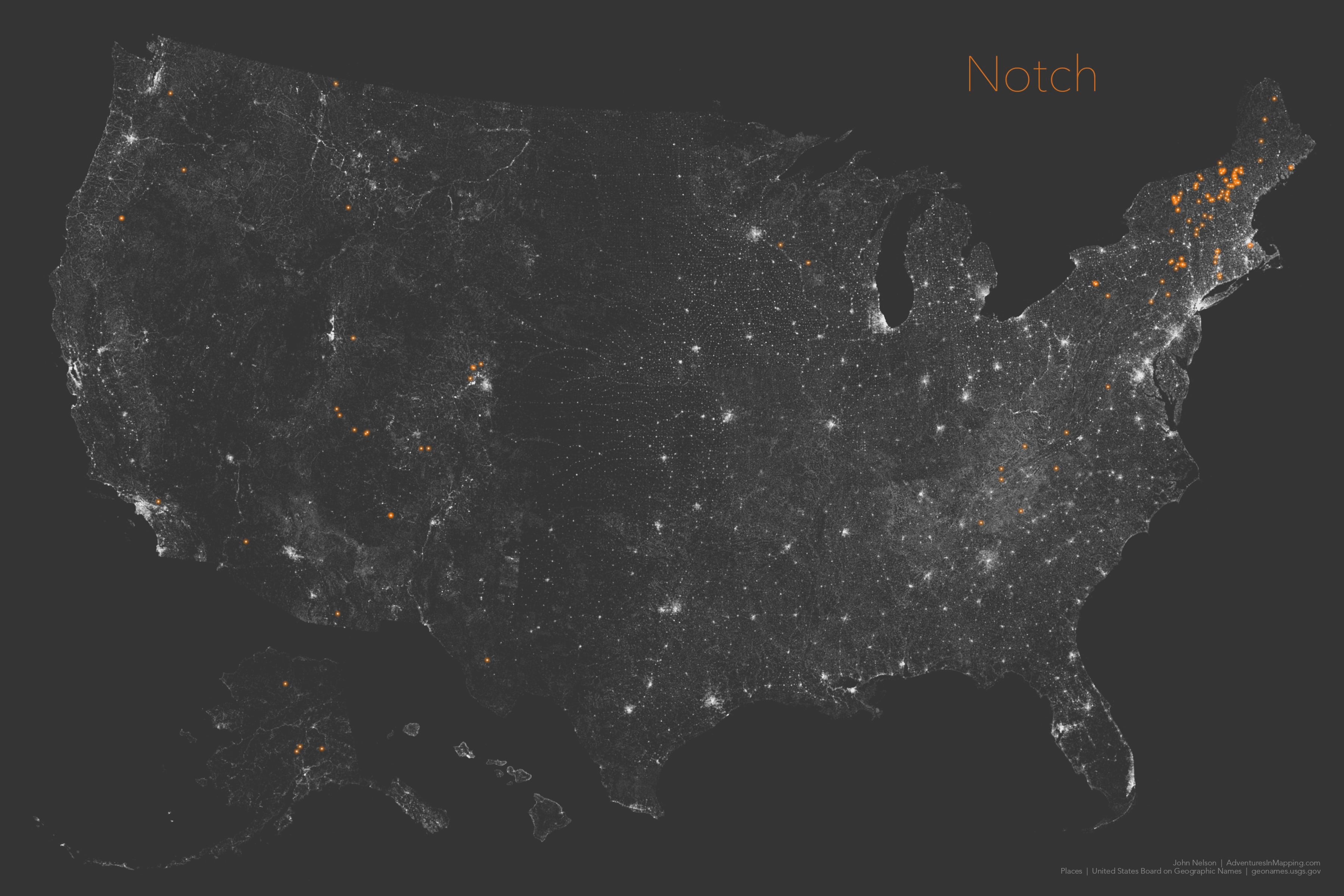 Wicked, look at that regionalism. “Notch” is certainly the preferred nomenclature of New Hampshirites. Why is it so concentrated in New England? IDK. I honestly DK.