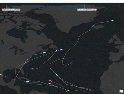 - You can use the time sliders setting to navigate to any time window and see hurricane paths generated for that time window.