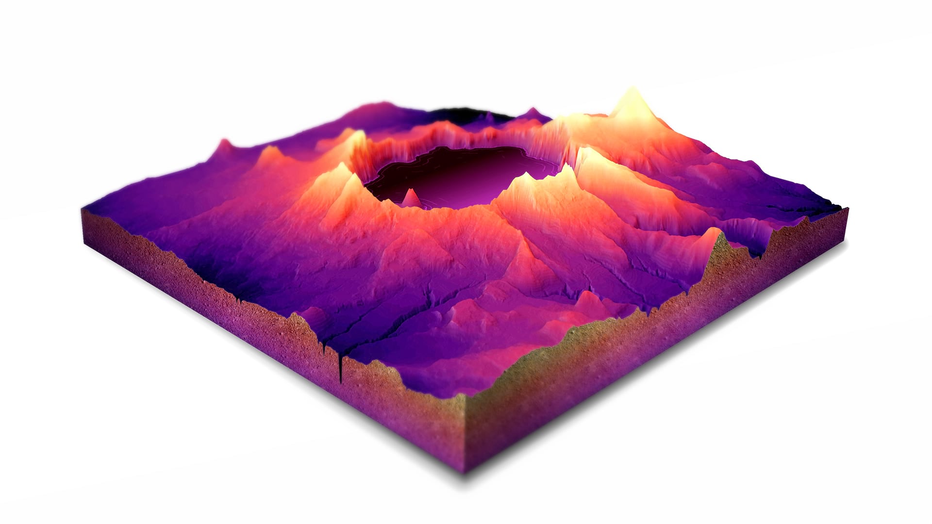 There is a lot of opportunity to customize what sort of graphic you drape into the cutaway walls of the landscape, depending on your area and goals. Gregory Buck made a version showing the Grand Teton mountains erupting from a cross-section of the moon. GI.Rahul Gawai drew in geologic layers beneath the Colorado River. James Wilson made a detailed volcanic cross-section of Mount Mazama. Jakob Hogenkamp made his two mountain-scapes floating handsomely on nothing at all. Wanmei Liang created a Mt St. Helens diorama with clouds and steam. Heather Sauerland scooped out a cube from the Owyhee Canyon. Dhaval Jariwala applied this trick to Kangrinboqe Peak/Mt Kailash.