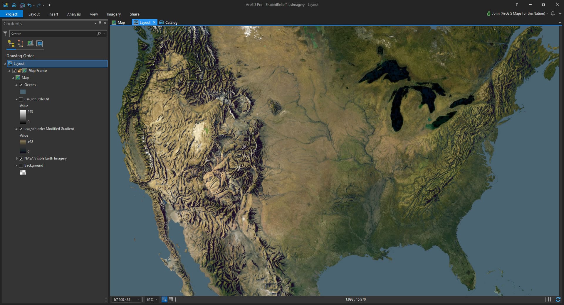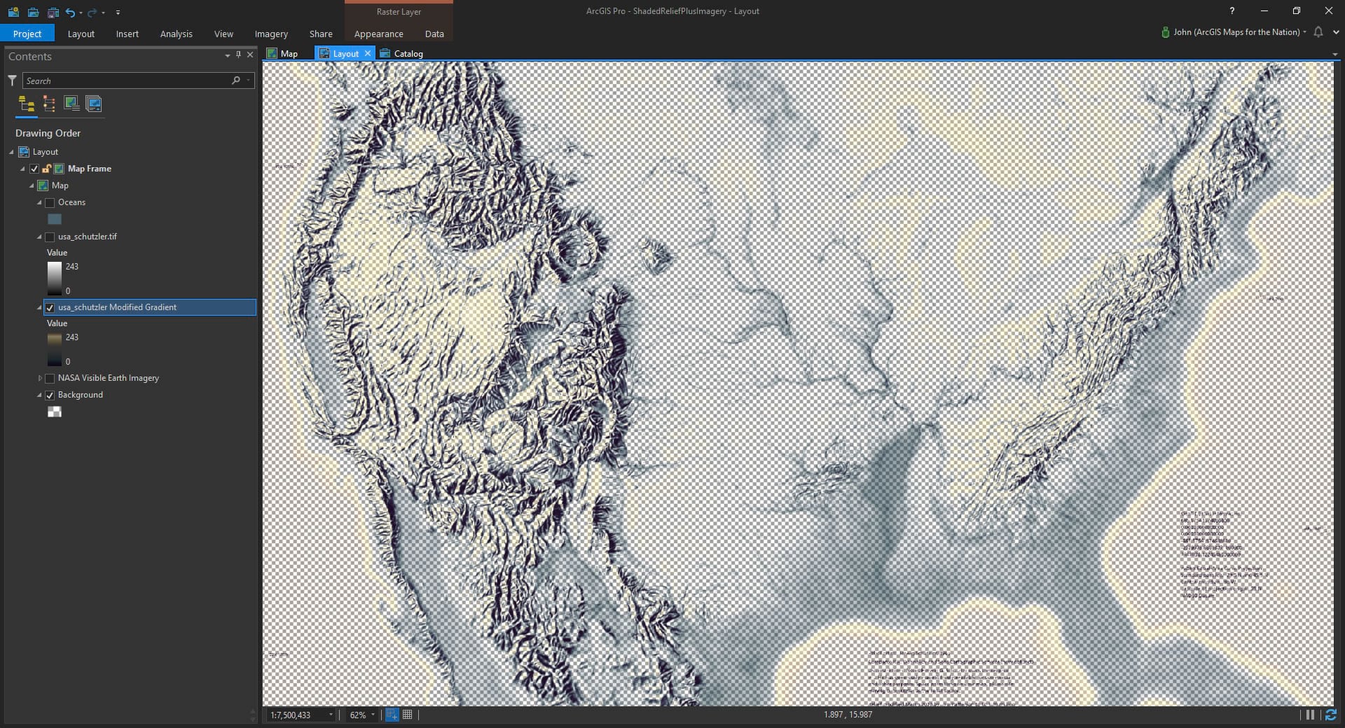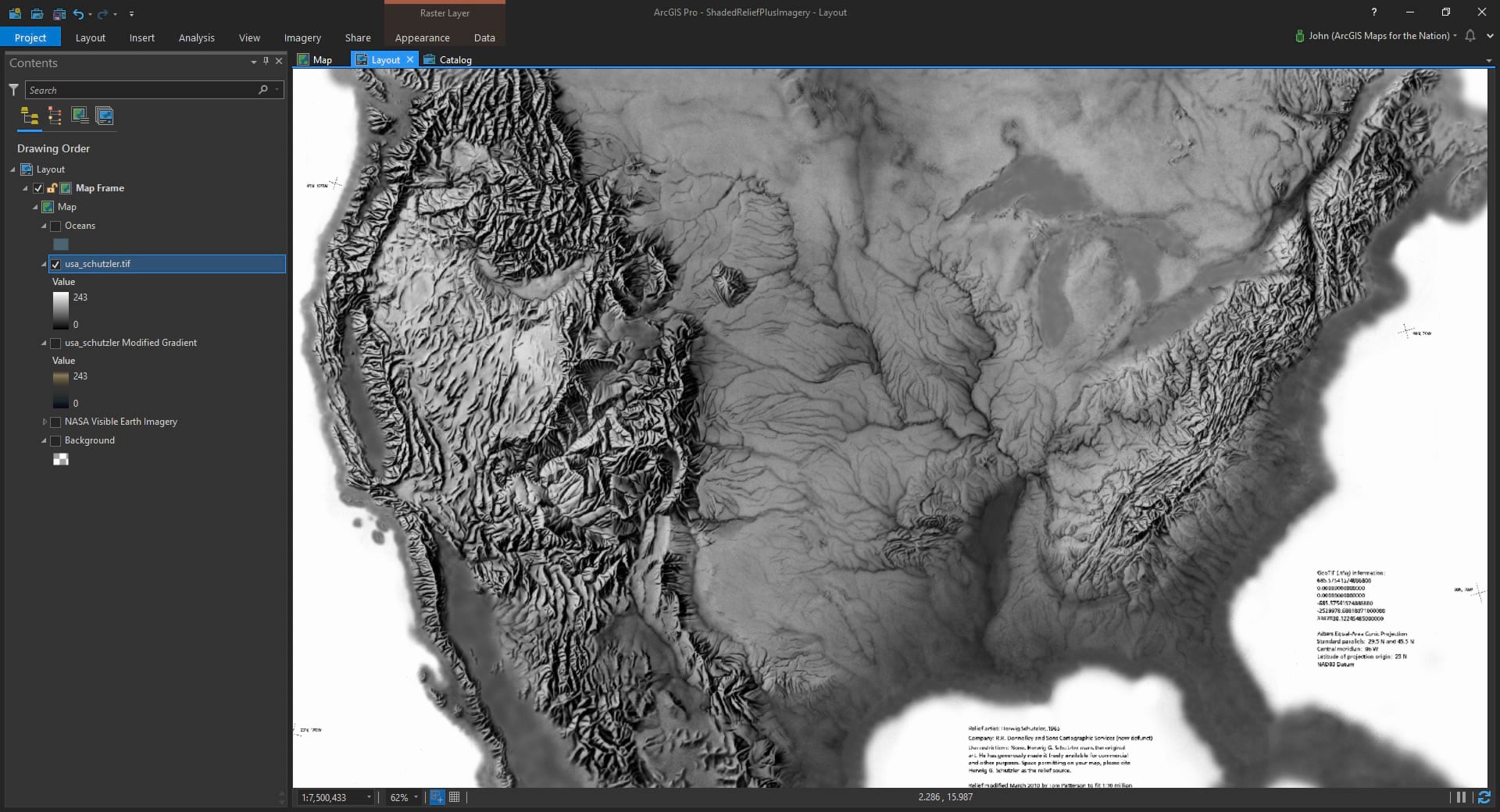 I hope that you visit the Shaded Relief Archive and pull in some of these amazing works into your own projects. To get you started I’ve shared my ArcGIS Pro project, so you’ll have a head start on the NASA imagery and the adjusted hillshade palette. So bust it open and pull in other hillshade images. Do your thing, and give a virtual high five to Tom Patterson and the Cartographers that he’s connected us to.