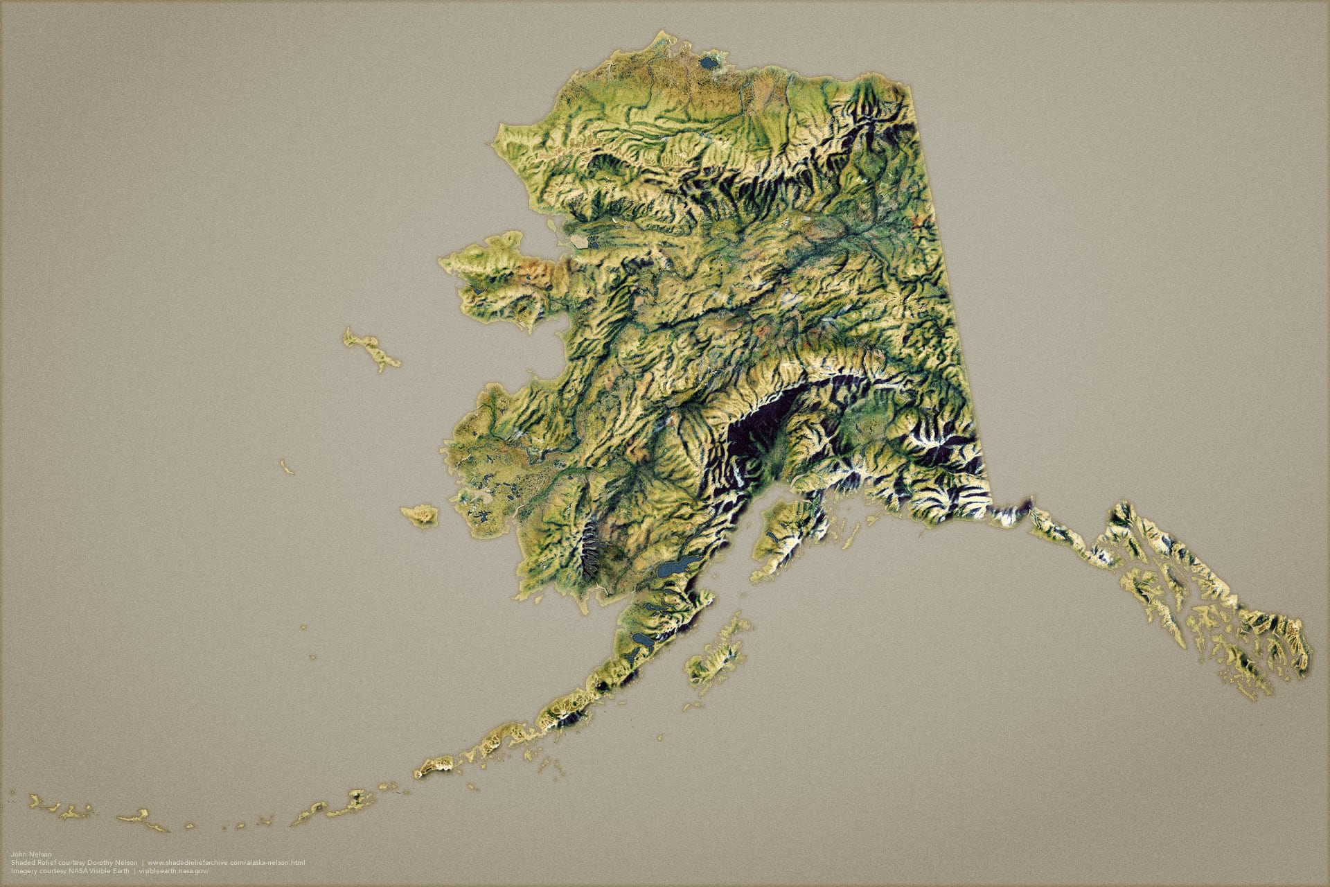 P.S. Here is a version of Africa, with hillshade painted by Kenneth Townsend (date unknown) and Alaska, with hillshade painted by Dorothy Nelson (date unknown).