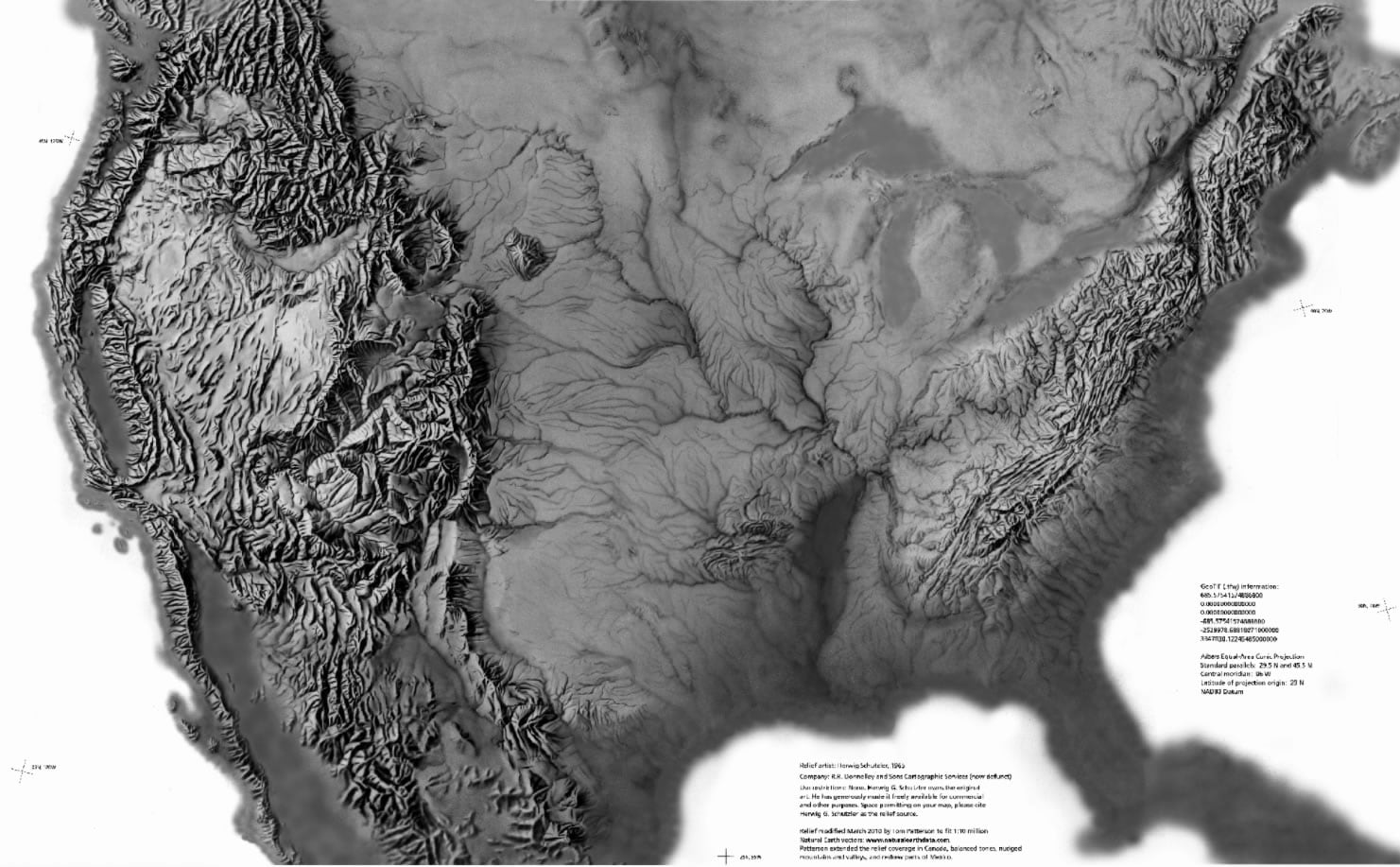 Herwig G. Schutzler painted this hillshade component of a United States print map in 1965. Tom Patterson makes it, and a host of gorgeous siblings, available here. Many are georeferenced already.