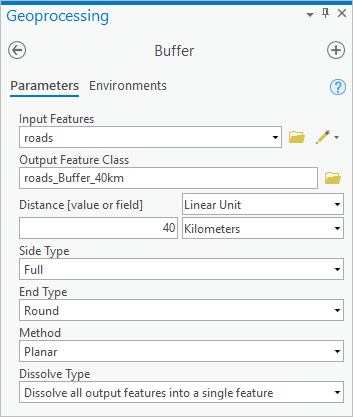3. Now you can run the Buffer tool on the road layer. It will only buffer your selected feature. I ran it twice, once at 120 kilometers, and once at 40.