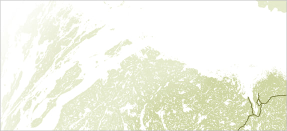 And it is a beautiful background pattern. I wanted to maintain the mottled texture of this lake-riddled land. I just didn’t want it to be too distracting from the map theme. My solution was to fade it out. The contrast between white lakes and green land decreases gradually with distance from the road. This allows the important lakes to still be read as features, while the unimportant ones do not compete with other map elements.