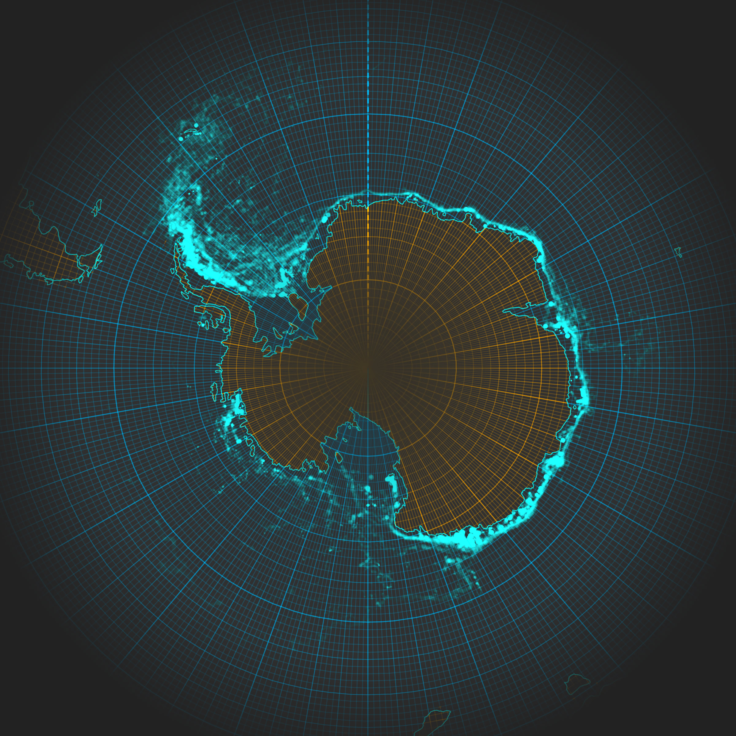 Here is a map showing over 300 thousand historic iceberg locations. The source data comes from “The Antarctic Iceberg Tracking Database,” an amazing collection of tracked iceberg locations and attributes. Here is that data merged into a single feature layer.