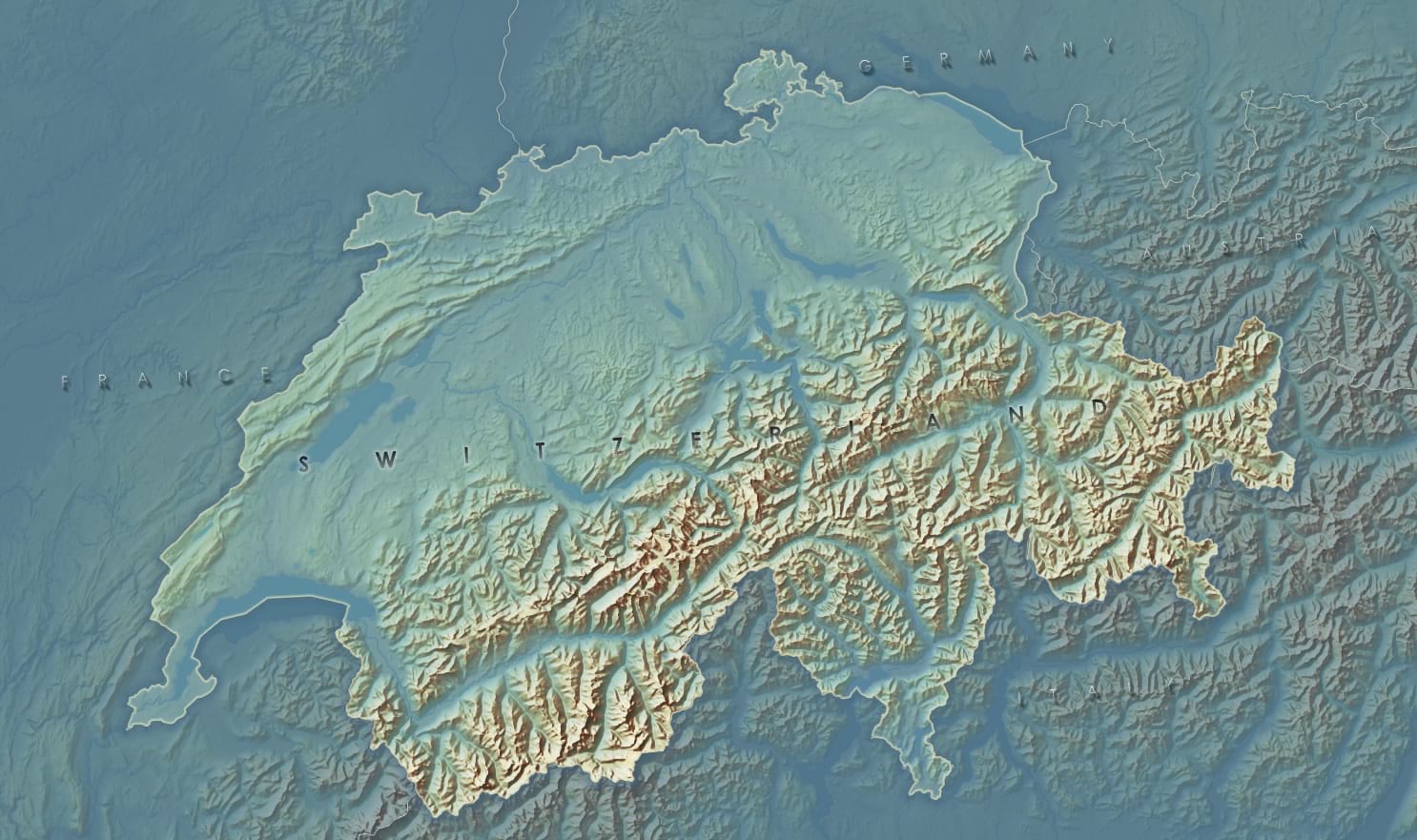 Depending on the context, they have be a pretty subtle presence. I find that sometimes labels do a bit more shouting than they need. Maybe you want a map’s terrain to have a visual prominence, like in this example of Switzerland, and the labels only seem to appear on closer inspection.