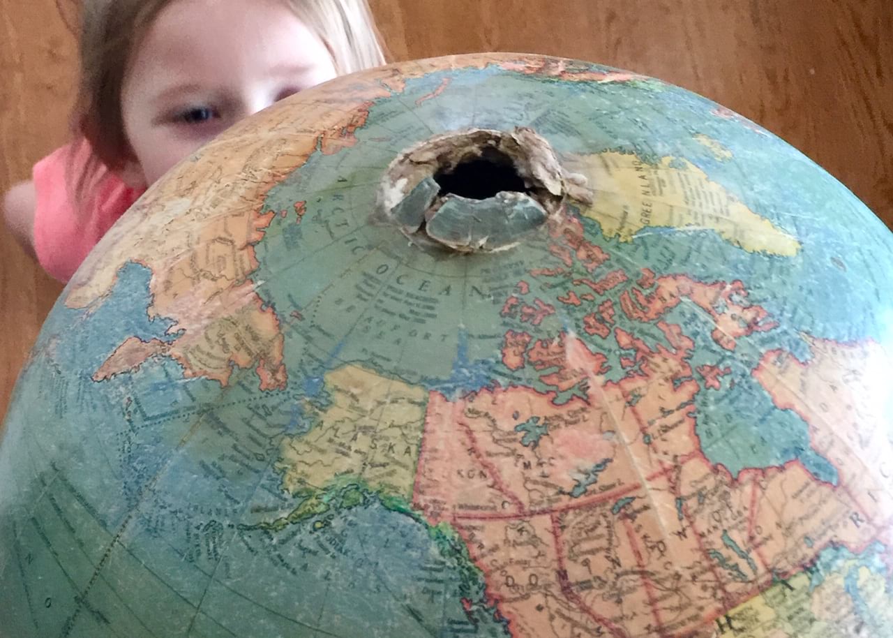 My own grandfather was a quiet man, slight of frame and painfully shy. He always wanted to be a farmer but instead worked in a paper mill and later ran a small service station. He taught my three-year-old father to point out each and every country on their family globe when he would whisper the name. My father turns 79 today. This is that globe.