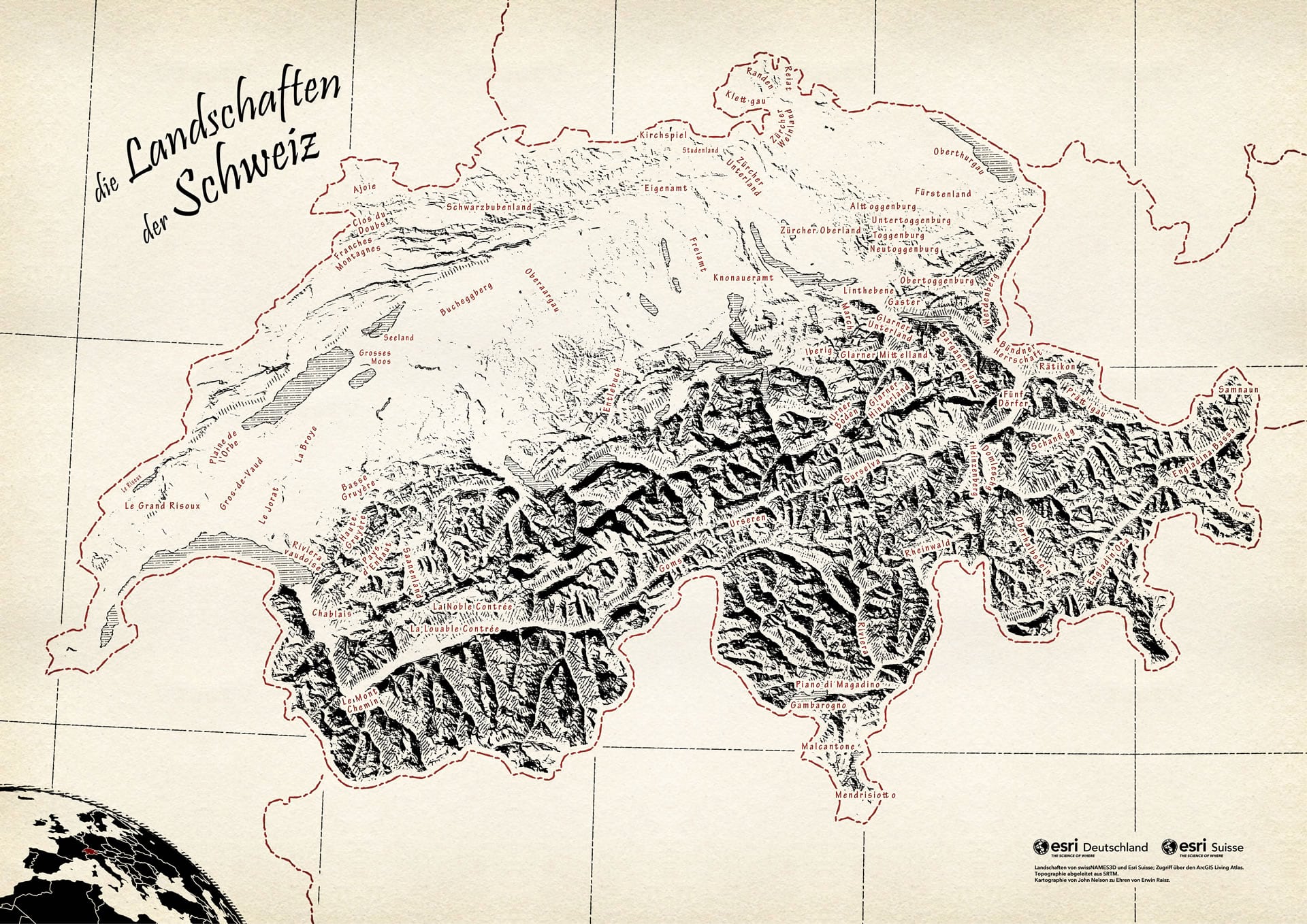 Here is a map of the landscapes of Switzerland, created in a manner meant to honor Erwin Raisz.