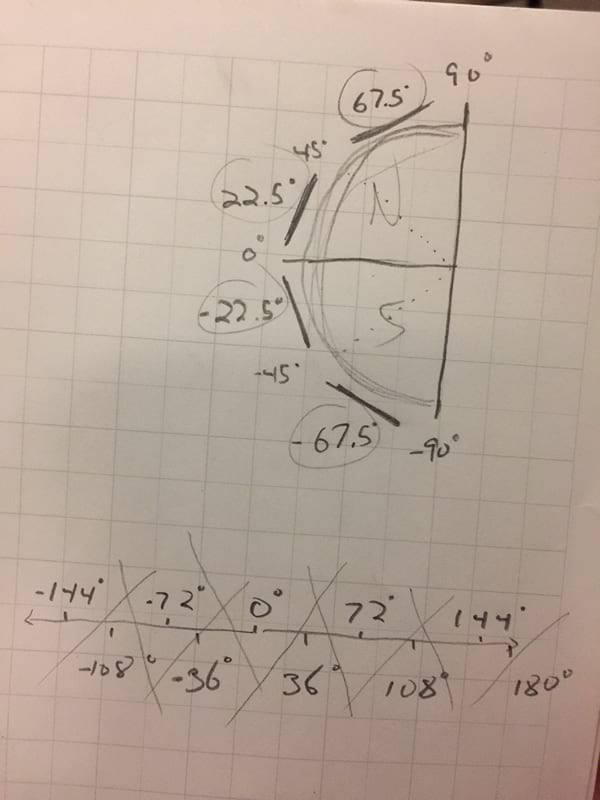 I first had to figure out all the orientations of my 20 map frames so they tessellate reasonably well over the geodesic sphere. This took some scratching.