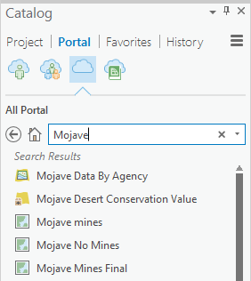 - You can also search for data on ArcGIS Online using the Catalog pane:
