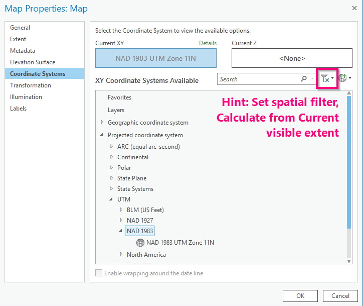 - Set an appropriate coordinate system. If you’re unsure of which one to use, refer to the UTM grid and choose the zone that applies to your area.