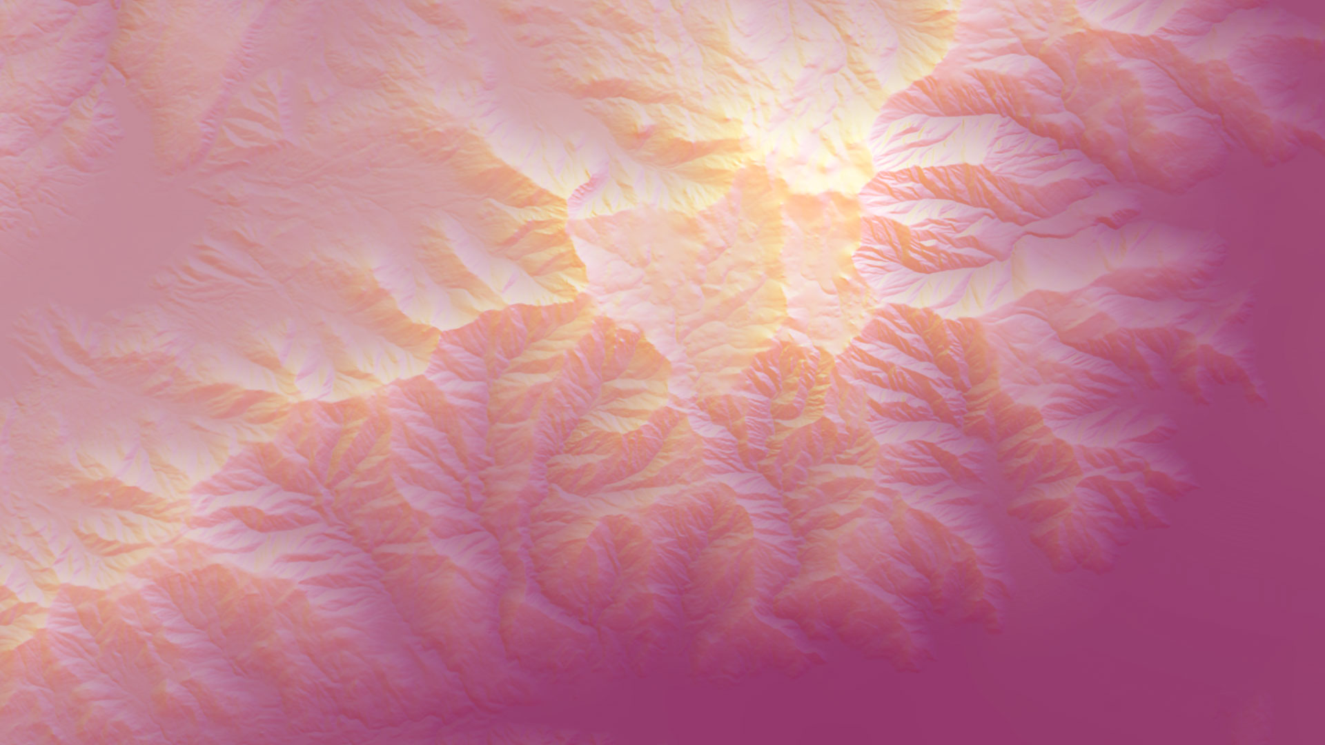 I used this project as an opportunity to experiment with some of John Nelson’s terrain tutorials, specifically his ‘Throwing Shade in Wild Color’ video. Three different reliefs with three different colors, and a DEM to create a ‘magenta haze’ at the lower elevations on the map.