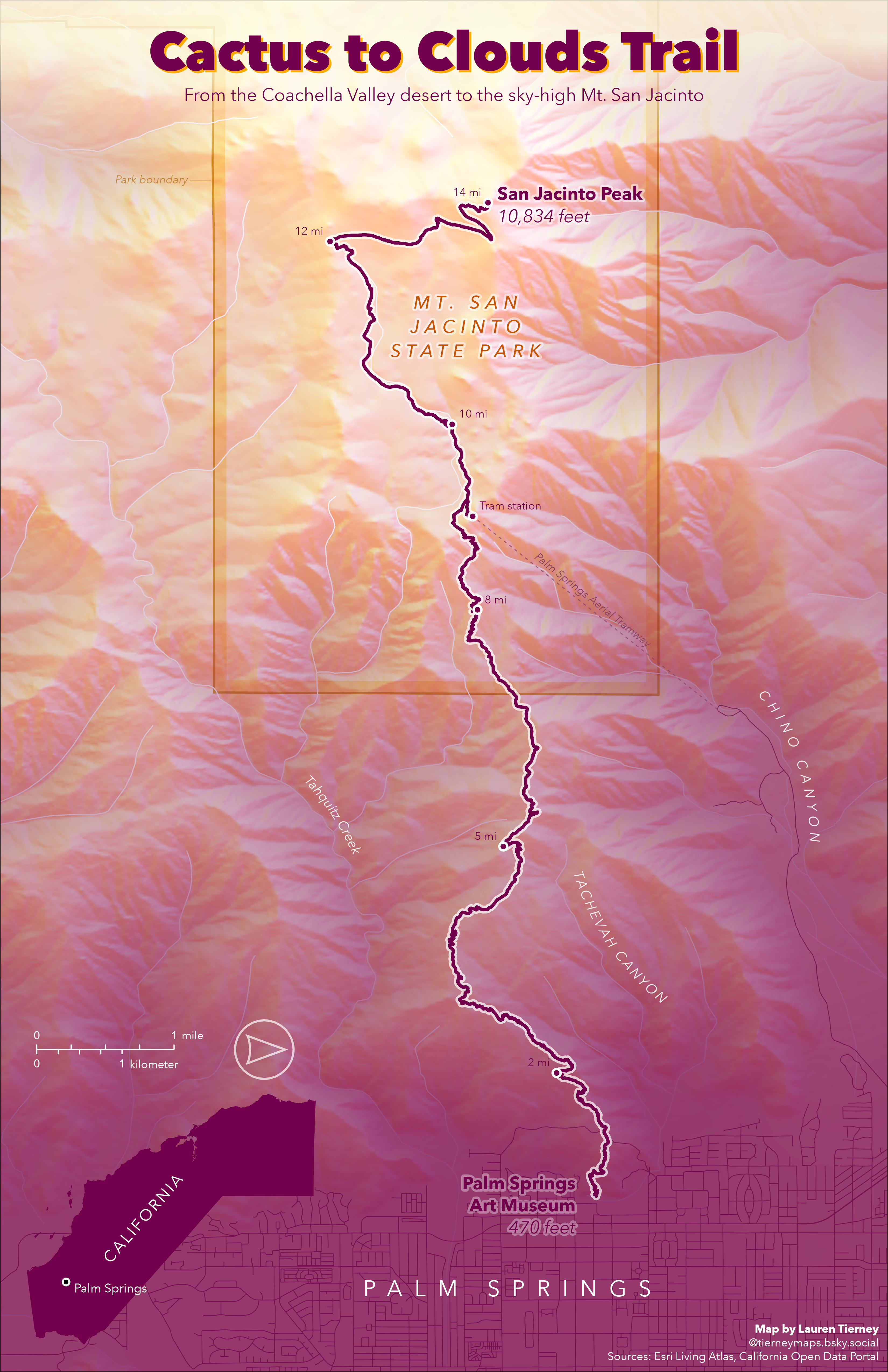 I really enjoyed creating this hiking route map with a sunset desert vibe reflected by the colors I saw in Palm Springs. I hope this inspires you to find your own cool and different inspiration out in the world and bring it into your maps, and maybe even try out some of the new features in ArcGIS Pro 3.5 while you’re at it!