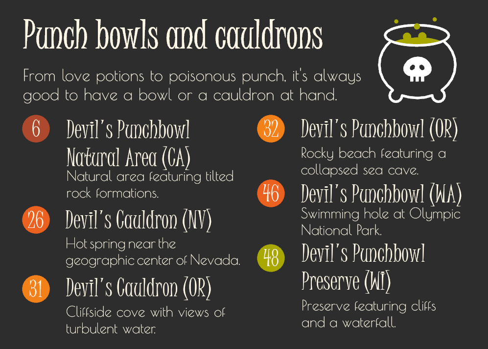 While doing research for this map, I got to learn about some awesome spots around the continental US and the folklore that give them their names. Here are my top 3 favorite ones: