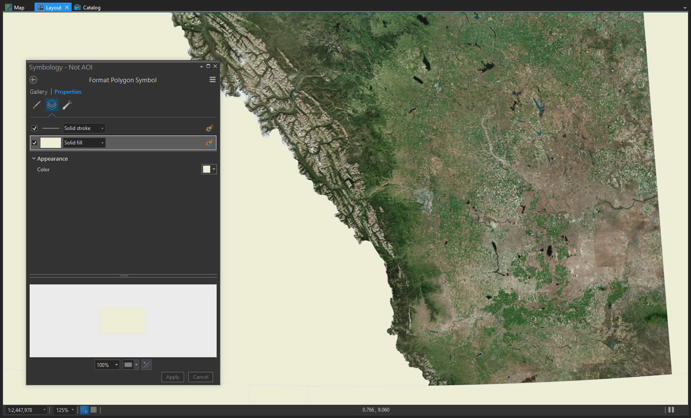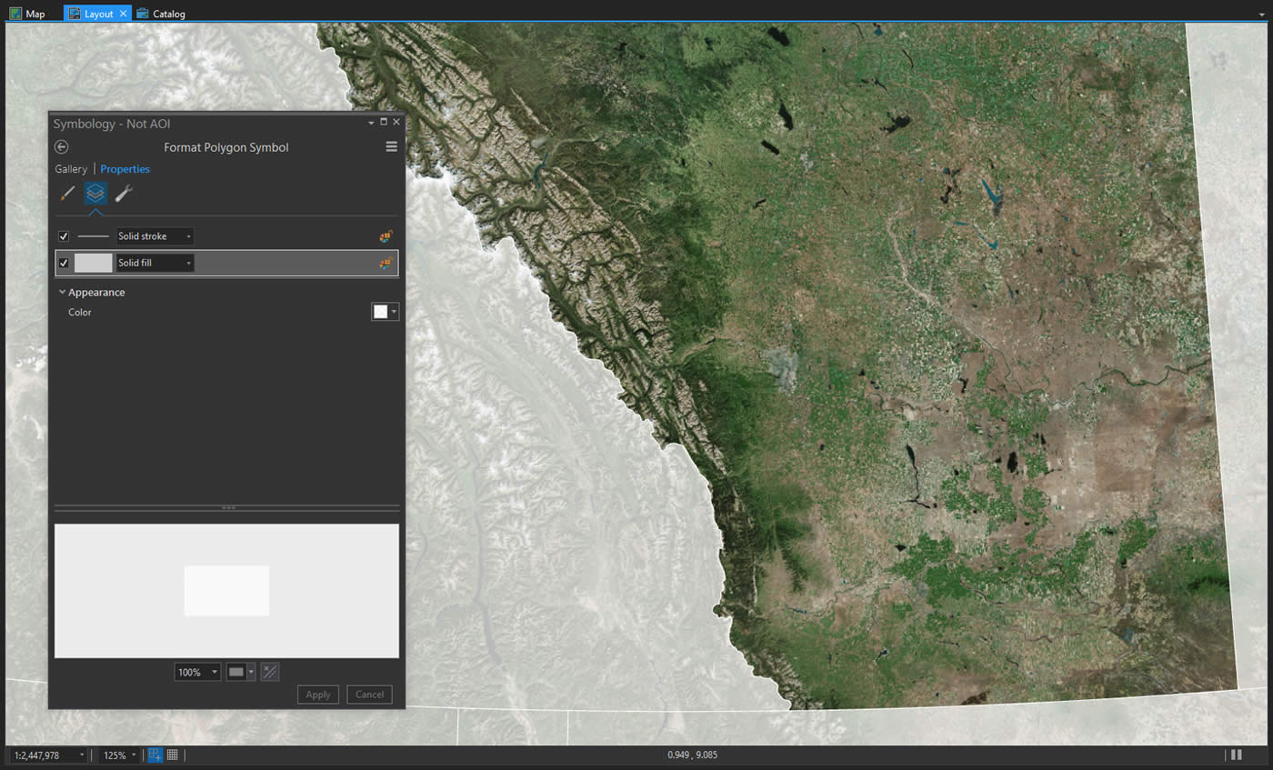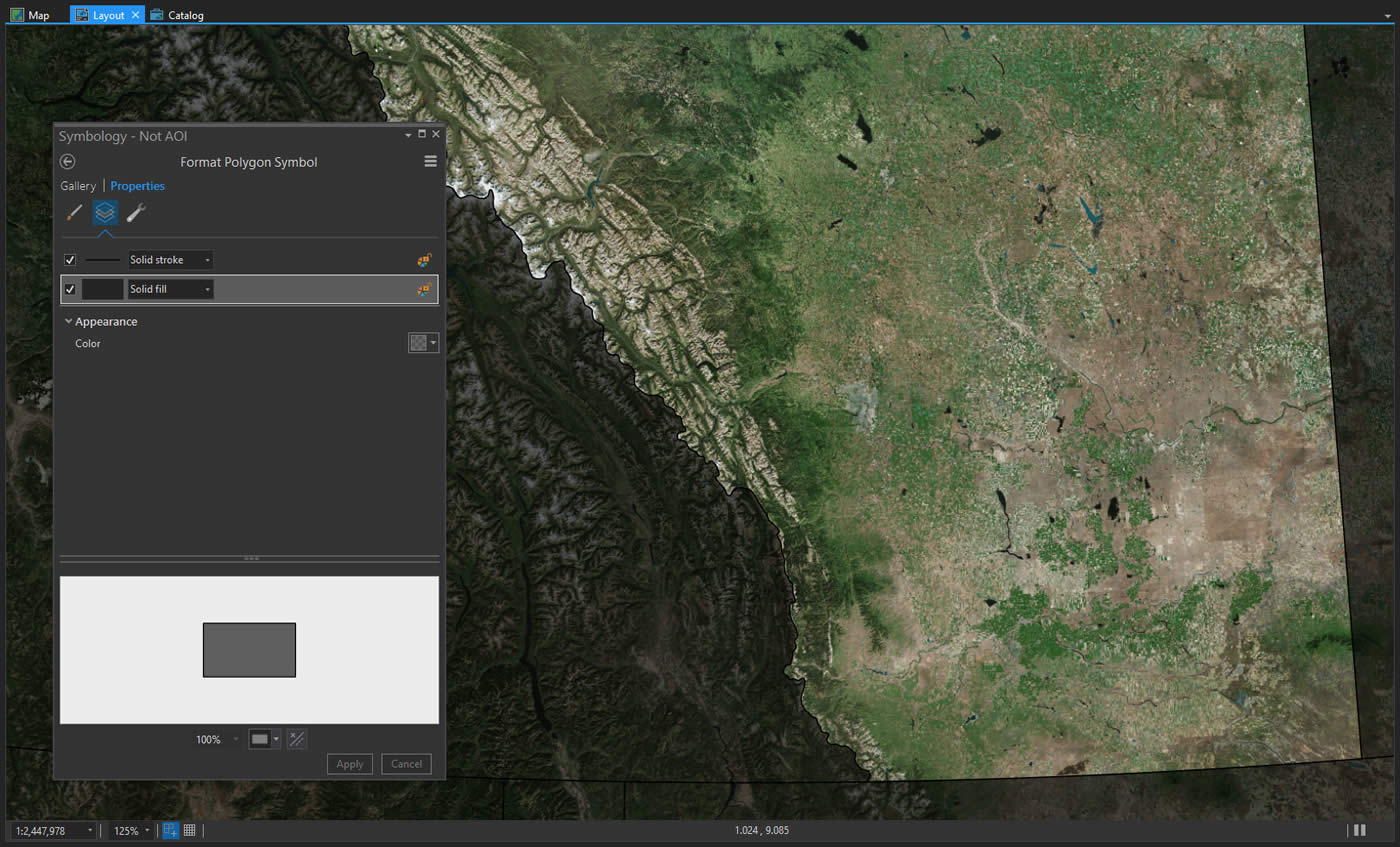 Every map has an inherent Area of Interest; it’s the part you want people to look at, to focus their attention. Sometimes maps benefit from a bit of visual assistance in marking out just where it is the map is about. There are lots of cartographic techniques that help us draw the eye to just the geographic areas in question. Helpers. Visual aids. Look-here-nevermind-there. I’ll call them AOIs, for brevity. See Greg Fiske’s Instagram feed for some particularly artful examples (just not right now!). In the meantime, let’s take a stroll down AOI lane in ArcGIS Pro. Where helpful, I’ve included a screenshot of the symbology settings for the AOI and/or Non-AOI layers so you can get a look behind the curtain…