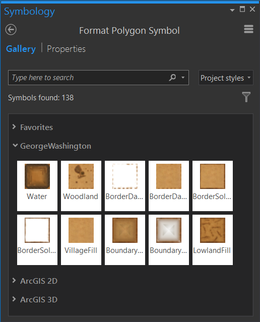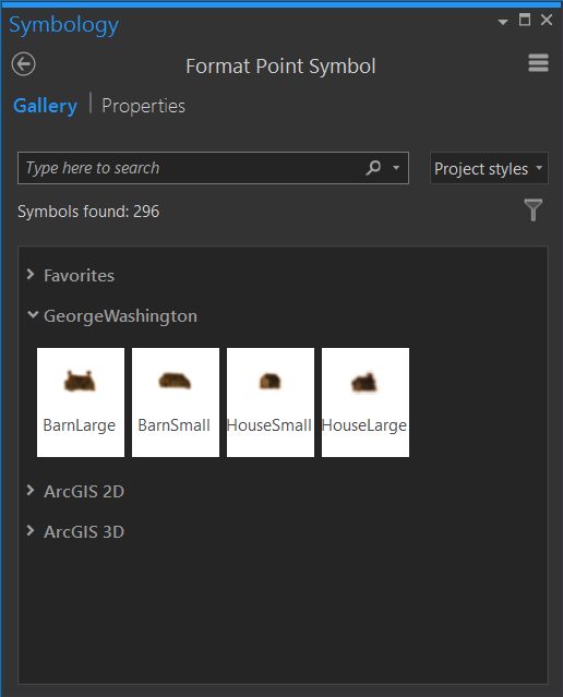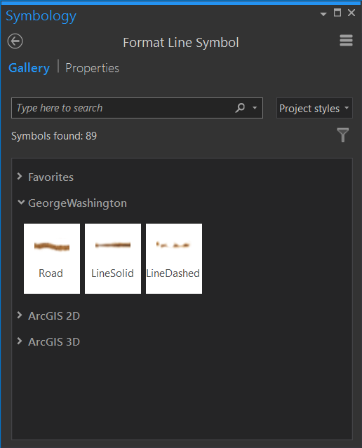 Now these styles will be available in the Gallery view of your symbology panel, depending on if your layer is points, lines, or polygons.