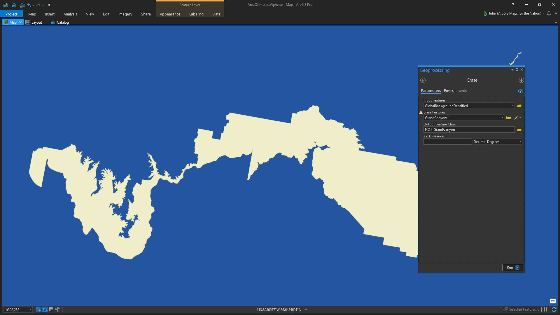 Then I fire up the Erase tool, and tell it to punch the Grand Canyon right out of the dough—er polygon.