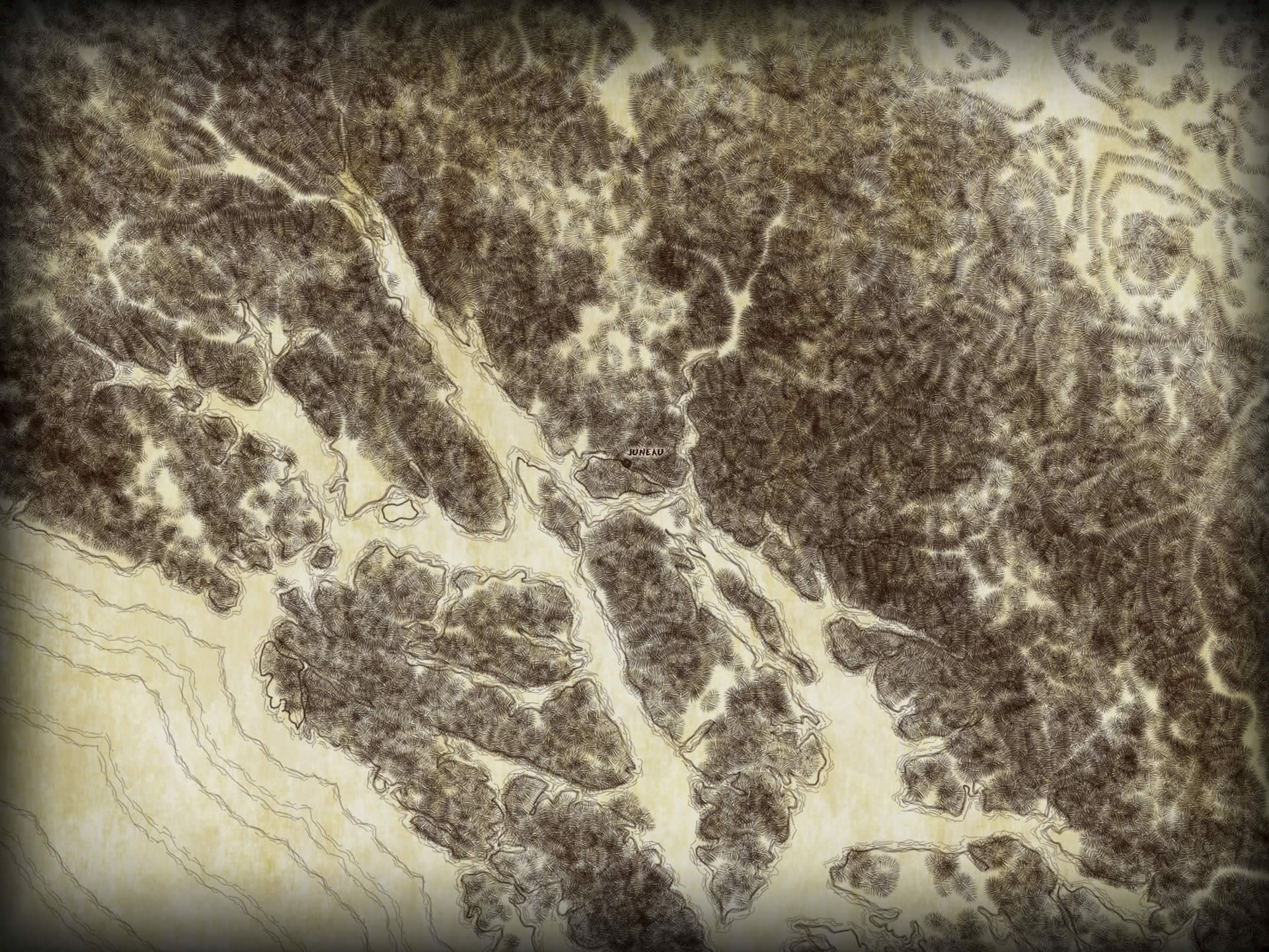 Here’s an example showing the floor of the Atlantic, in the “rubble” style over archival cotton paper.