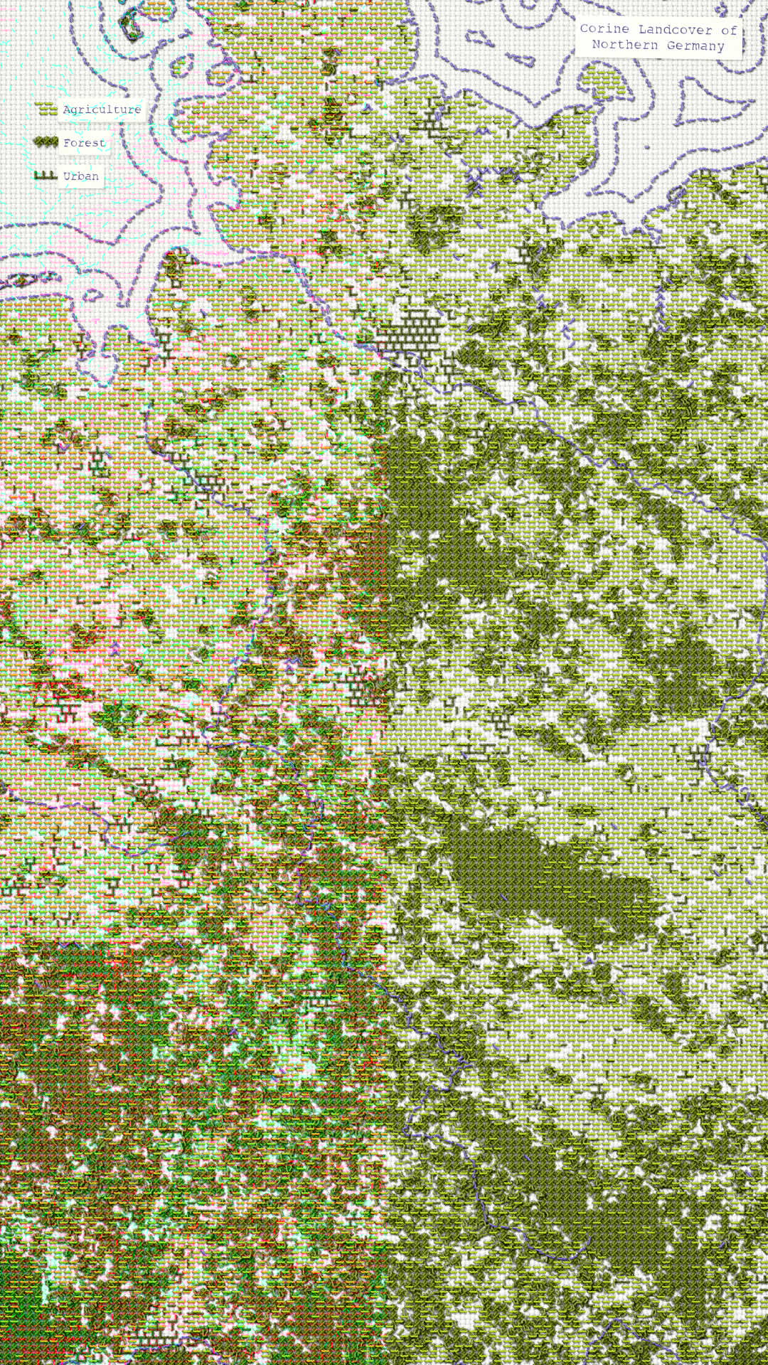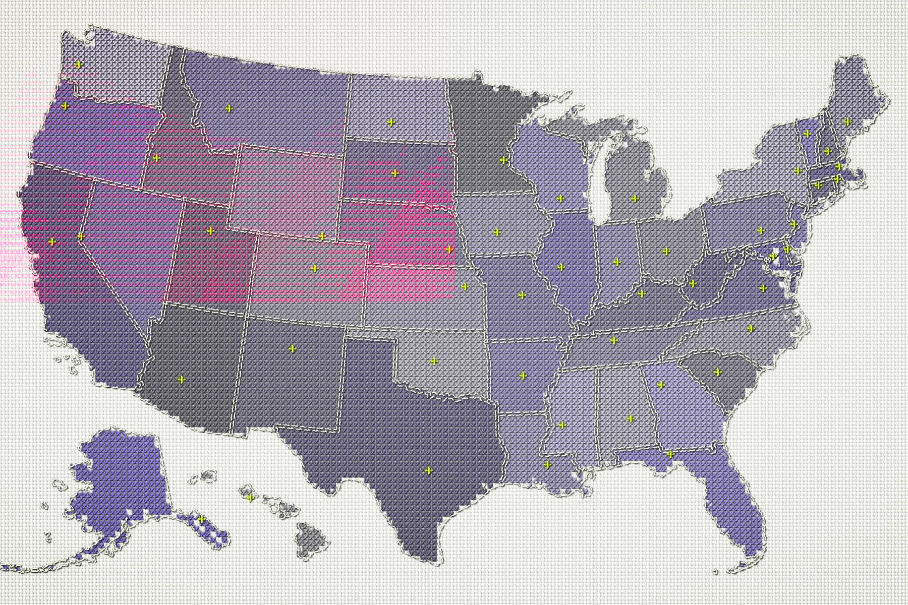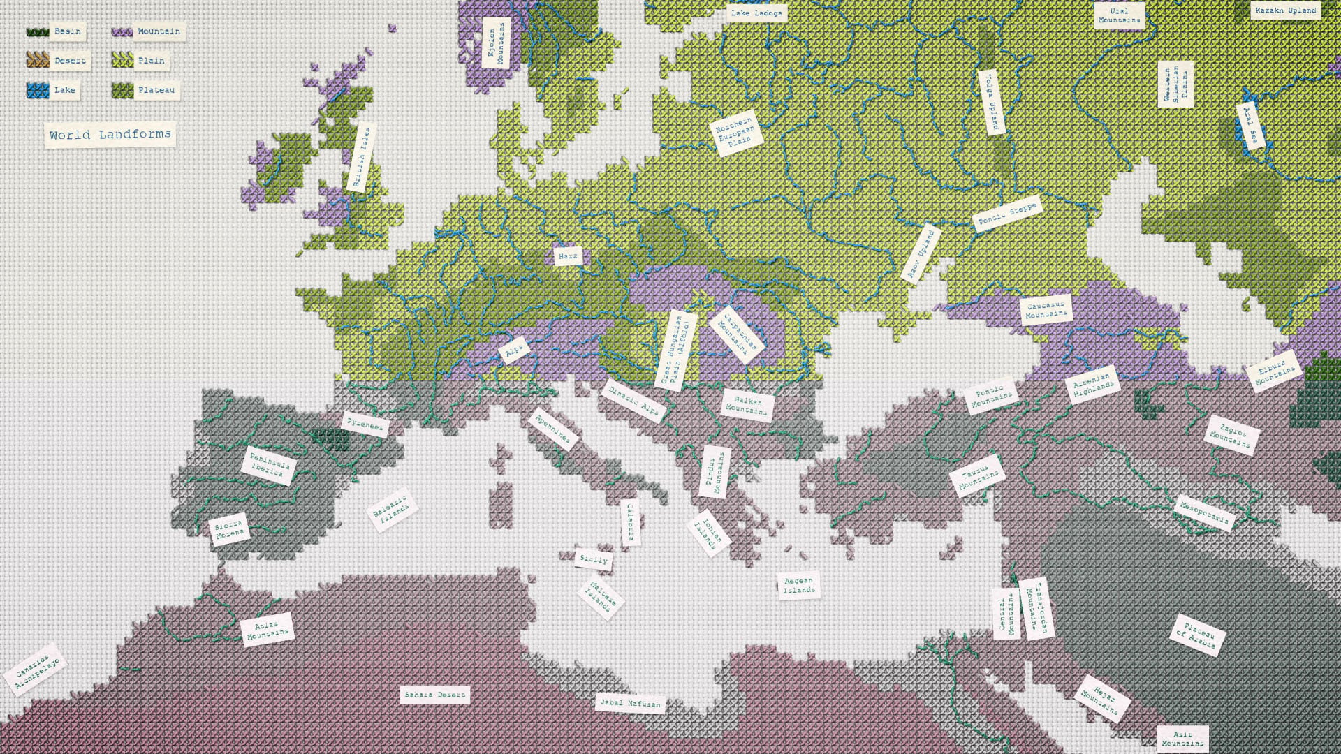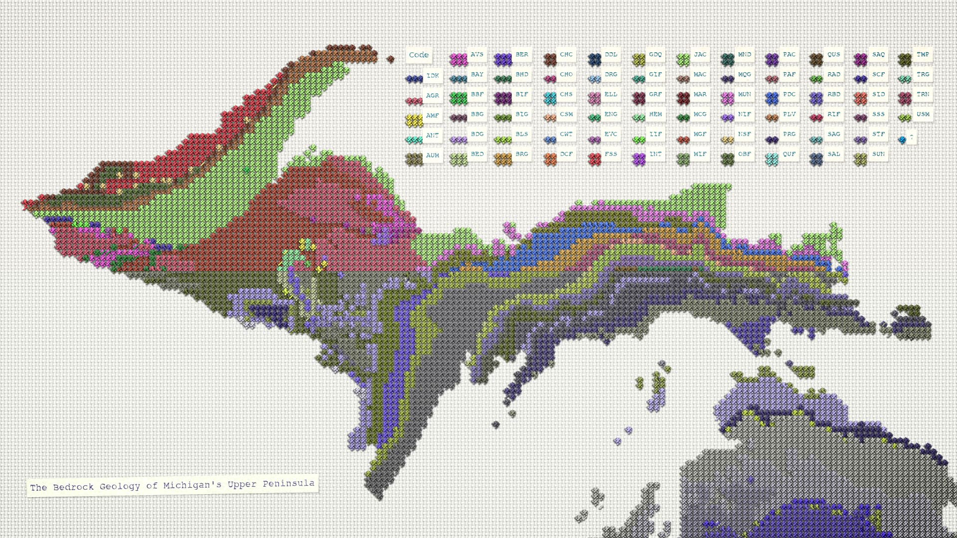 In any case, I’ve always marveled at the thread-work of folks out there—Bettina Matzkuhn and Edie Punt, and more recently Rachel Brackenridge. Over the years I’ve thought about trying to make a cross-stitch style for ArcGIS Pro, so maps can be gridded charmingly as cross-crossed brightly colored thread. A handful of folks have even asked about it. I put it off because I wanted to do right by it, for surprisingly personal reasons. But my experience with the Lego Map style gave me confidence that a cross-stitch style was doable.