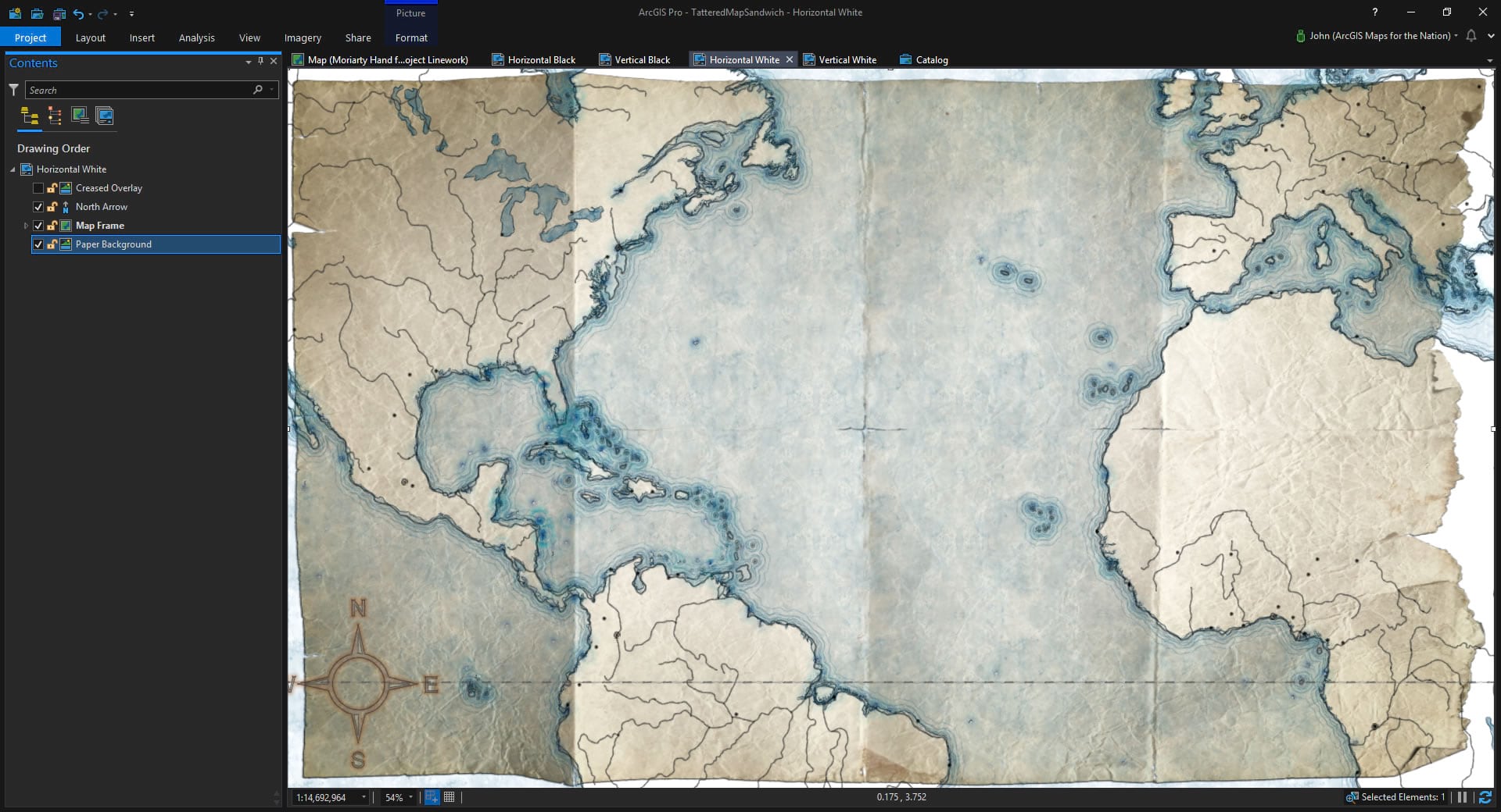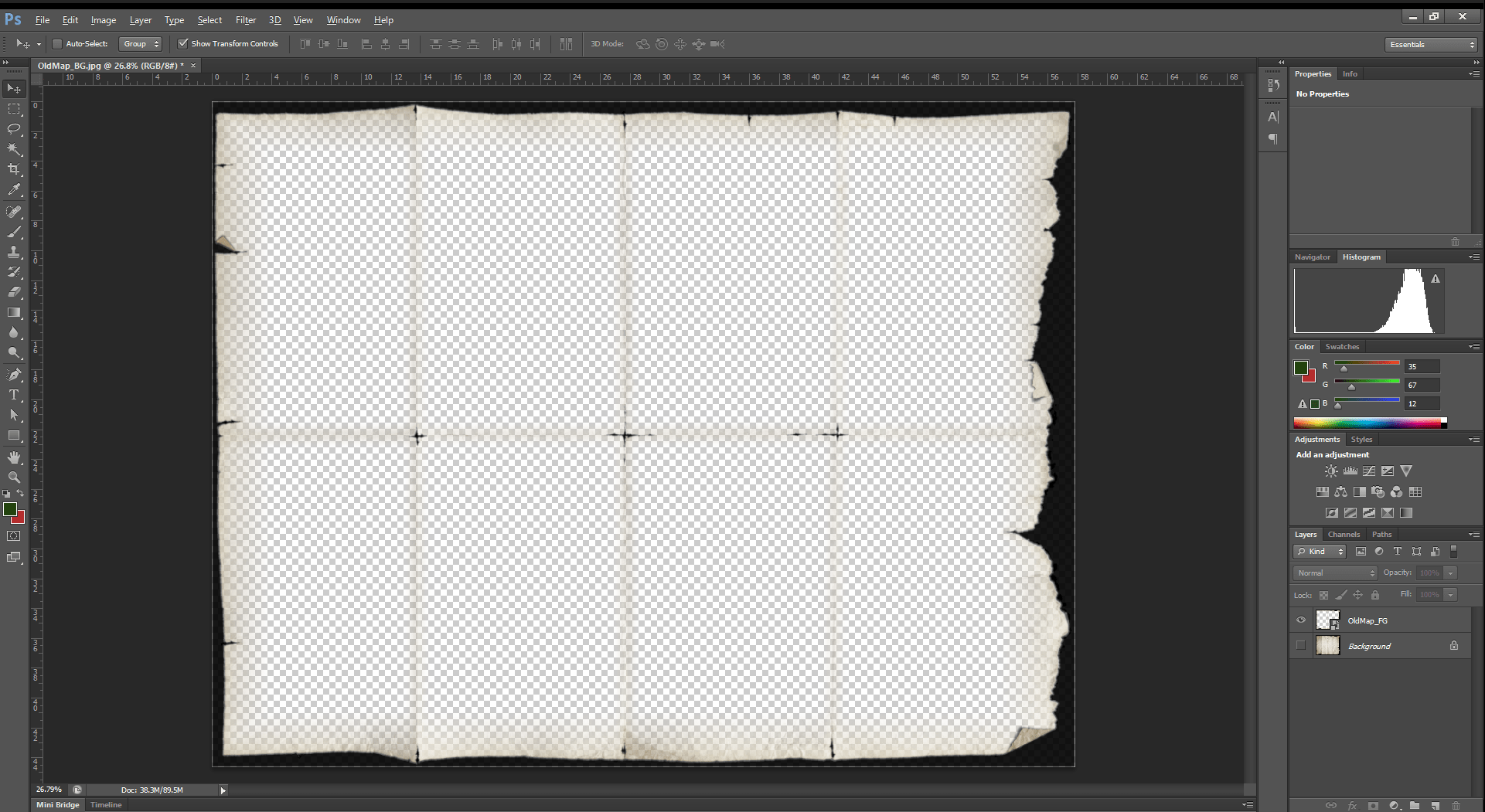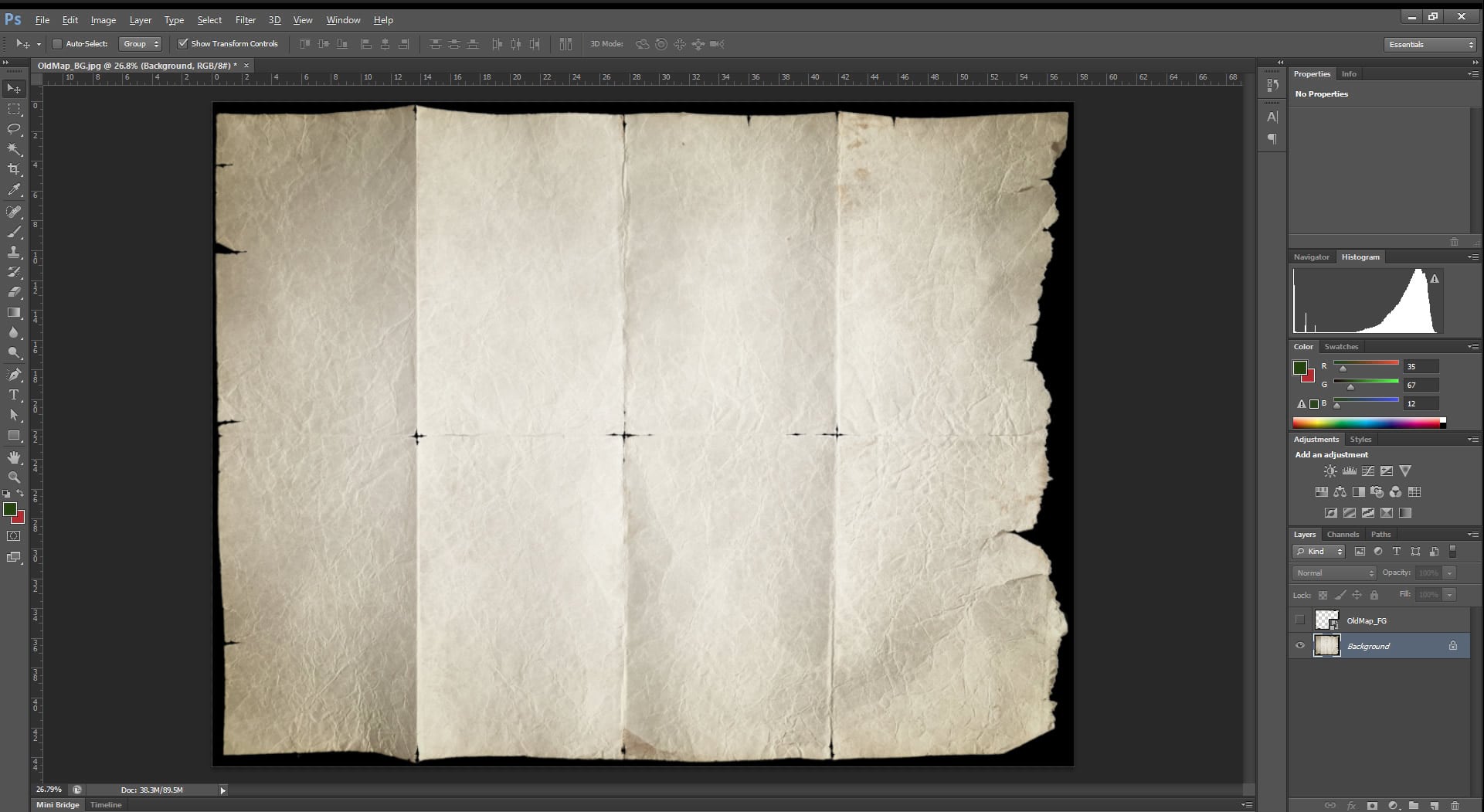 It’s because it doesn’t look like it’s printed on old tattered paper! Not to worry. In the layout, insert the paper background image (called OldMap_BG.jpg) I’m sure you just downloaded.