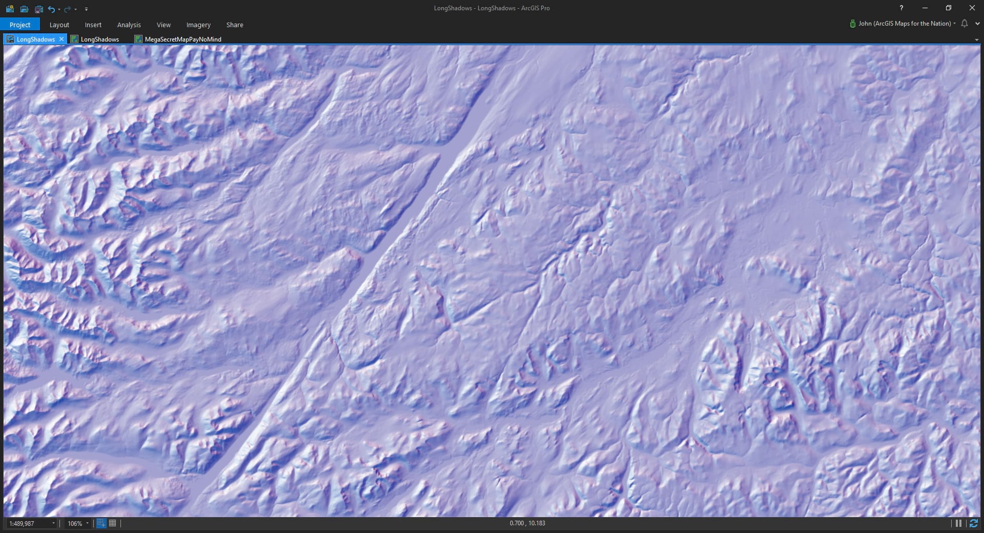 Hillshading is a gloriously delicious endeavor for any map nerd. But, as is the case with any digital pursuit, it’s in the pushing aside of the defaults that the real devious stuff can happen. In this post we will slide down the rainbow and look for an interesting optical/chromatic effect for our crafty hillshading shenanigans in Pro using only one source layer from the Living Atlas and the hillshade Raster Function.