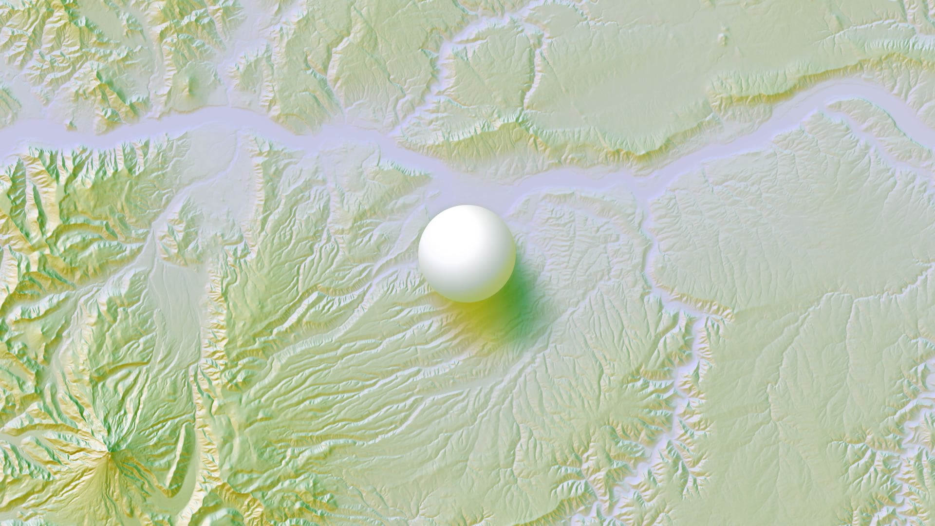 Can you use different colors? Sure! Just try to choose a series of colors that are consecutive on the color wheel (and an analogous color for the mist). For example, here is a version using spring greens and amber hillshades with a chilly violet mist…