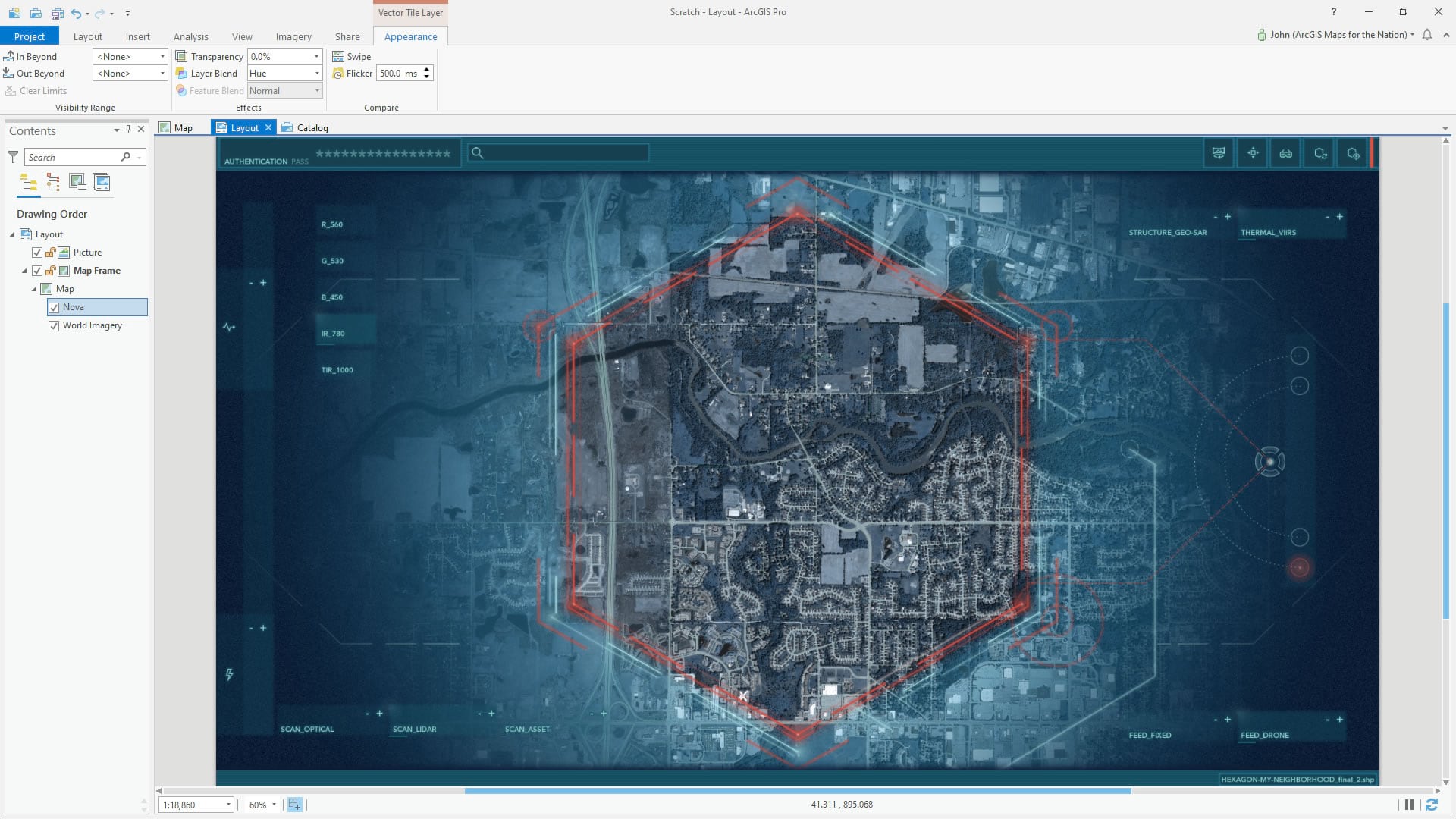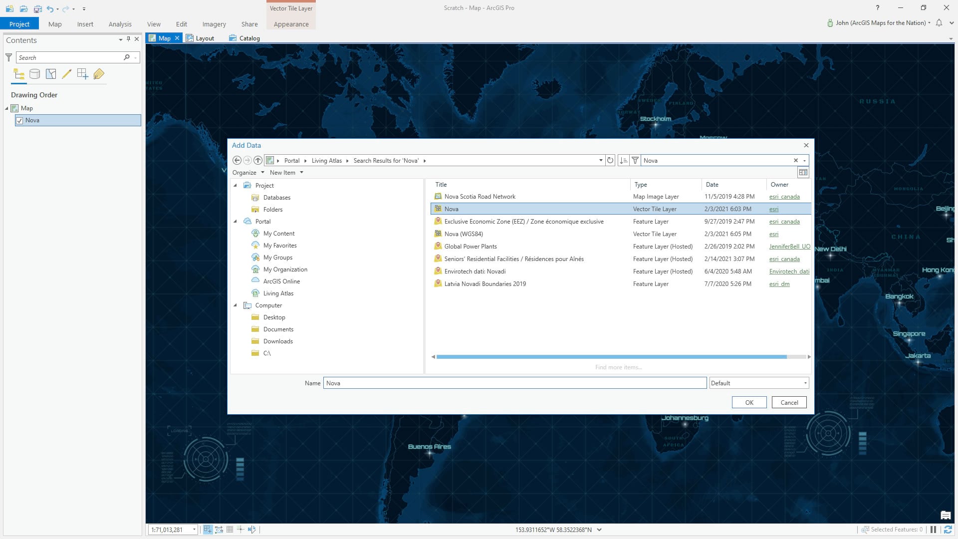 1 Add the cool spy-thriller Nova basemap from Living Atlas.
