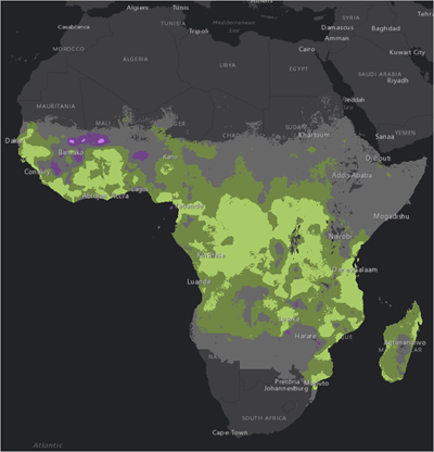 In this article, you’ll use an adaptable workflow for quickly analyzing and visualizing your raster data to find out how much malaria rates have decreased. Using data from the non-profit Malaria Atlas Project, you’ll analyze how malaria rates for children age 2 to 10 in Sub-Saharan Africa changed since 2000. After downloading the data, you’ll use the Raster Functions analysis tool in ArcGIS Pro to calculate the change in malaria prevalence from 2000 to 2015. Then, you’ll visualize malaria rates over time in Sub-Saharan Africa.