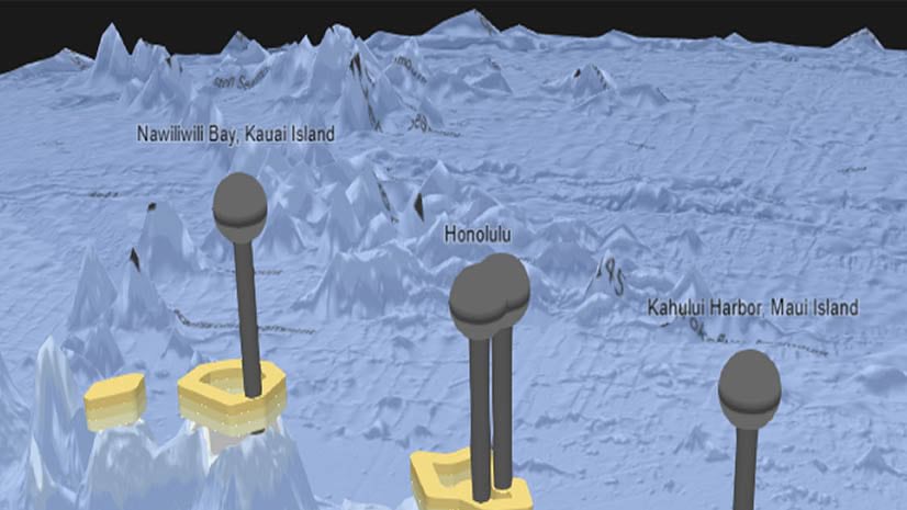 Additionally, spot heights, labels and latitude/longitude labels were all published as point web scene layers. These labels have a visibility range setting applied so as you zoom out they disappear and declutter the landing site map. And when draped across the globe’s surface you get a hint of the undulations from the elevation surface.
