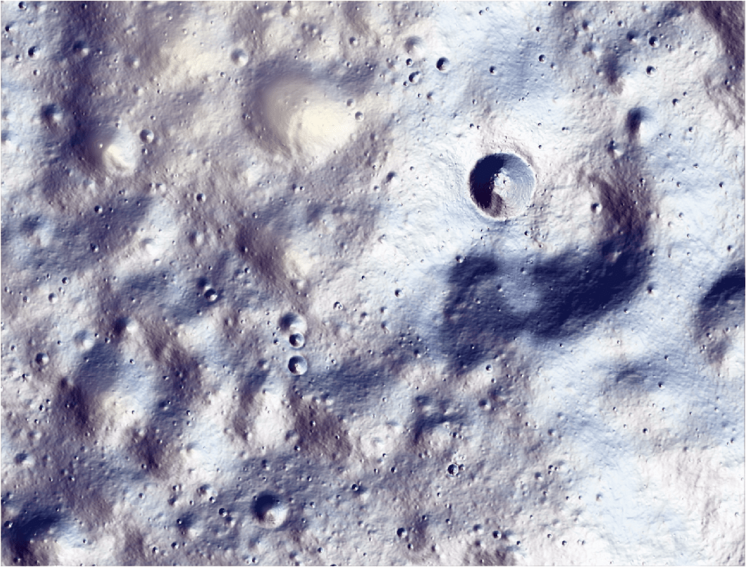 Every map needs data. Fortunately the moon is well served by NASA who host or supply a wealth of different datasets that form the basis of the map. The basic data requirements are a Digital Elevation model. From this I can derive all sorts of other representations. The Planetary Data System is a great entry resource for moon data (and for other planets and satellites). The Lunar Reconnaissance Orbiter Camera (LROC) web site also provides detailed and high-resolution data for many parts of the moon, including the Apollo mission landing sites.