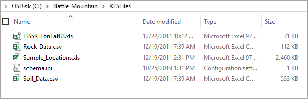 3. Browse to your project area, expand the Battle_Mountain folder, then expand the XLSFiles folder.