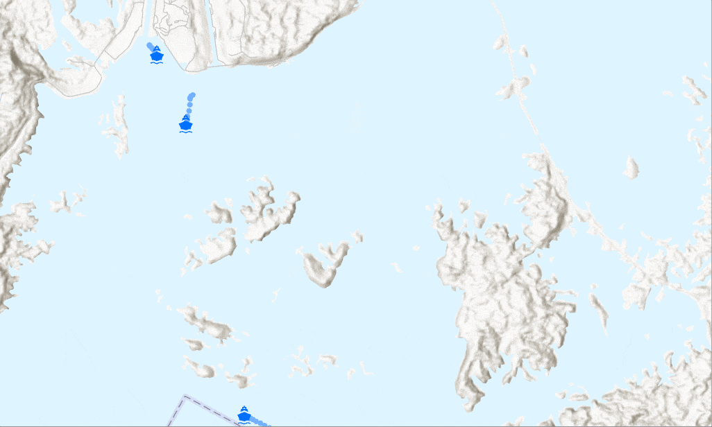 A stream layer showing only the tug boat that meets the definition query - Use Previous tab on the Symbology pane to hide previous observations from the display and control the number of previous observations per track (or per moving objects.)