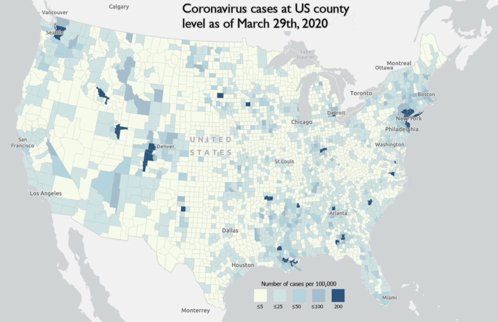 Johns Hopkins University CSSE’s USA county level coronavirus (COVID-19) hourly data is currently available through ArcGIS Online. These are point data representing center points within each county. I was asked the other day (a) how to bring this data into ArcGIS Pro to visualize them per county polygons and (b) how to keep it updated; and if necessary, do further analysis, reporting etc. using the vast capabilities we have in ArcGIS Pro. In response to that question, I decided to write this blog.