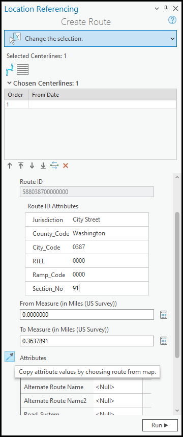 A Copy attribute values from route from map button, also known as an eyedropper, in the Create Route, Realign Route, and Reassign Route panes was added at this release. This button allows attributes from an existing route to be copied to when creating new routes.