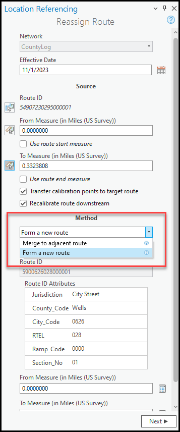 For users utilizing a line network, the Reassign Route tool has been enhanced to support reassigning to a new line when making edits in a line network. Part of a single route, an entire route, or multiple routes can now be transferred from one line to another with this enhancement. This enhancement also supports the workflow when part of or an entire route in a derived network needs to be transferred from one route to another.