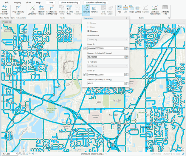 The new translate tool allows you to quickly translate measures between routes that are coincident or intersections within any LRS Network. Additionally, if utilizing a line network, the tool will support translating between RouteID and Route Name or LineID and Line Name fields.