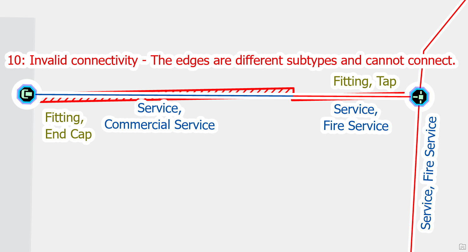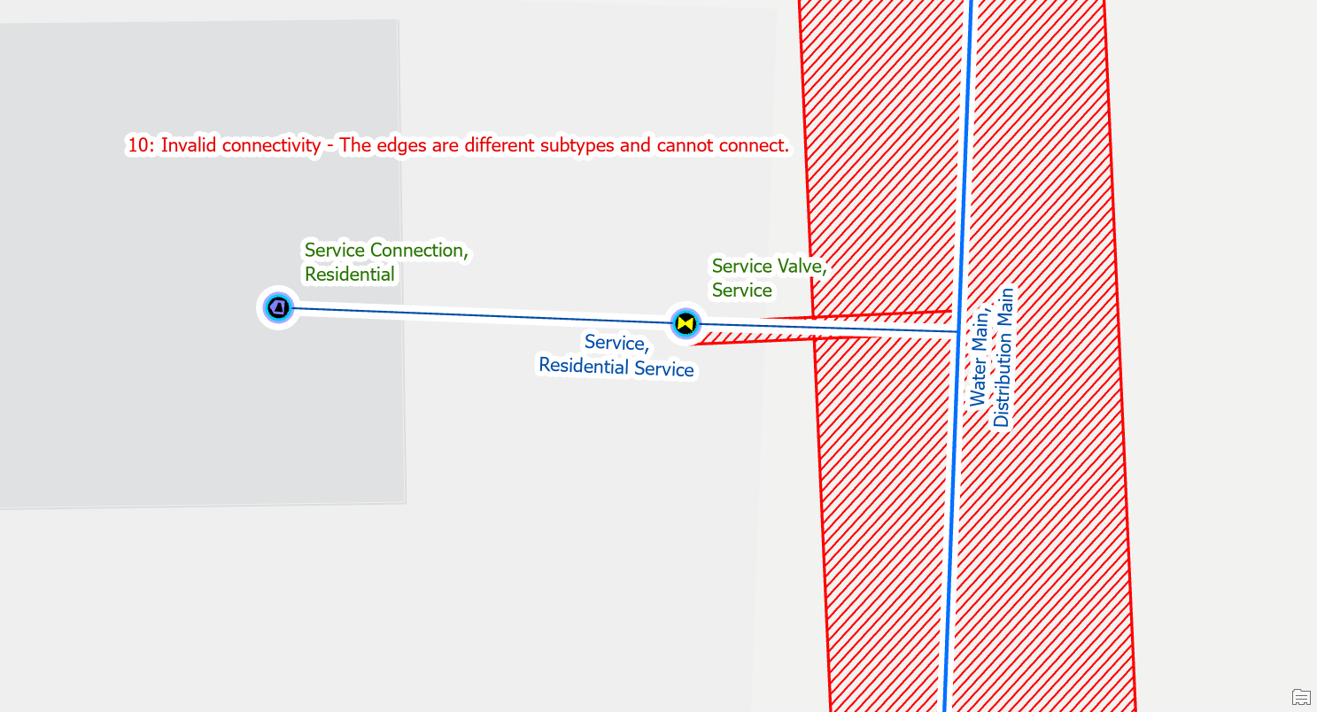 | Edge-Edge Errors | 10: Invalid connectivity – The edges are different subtypes and cannot connect |