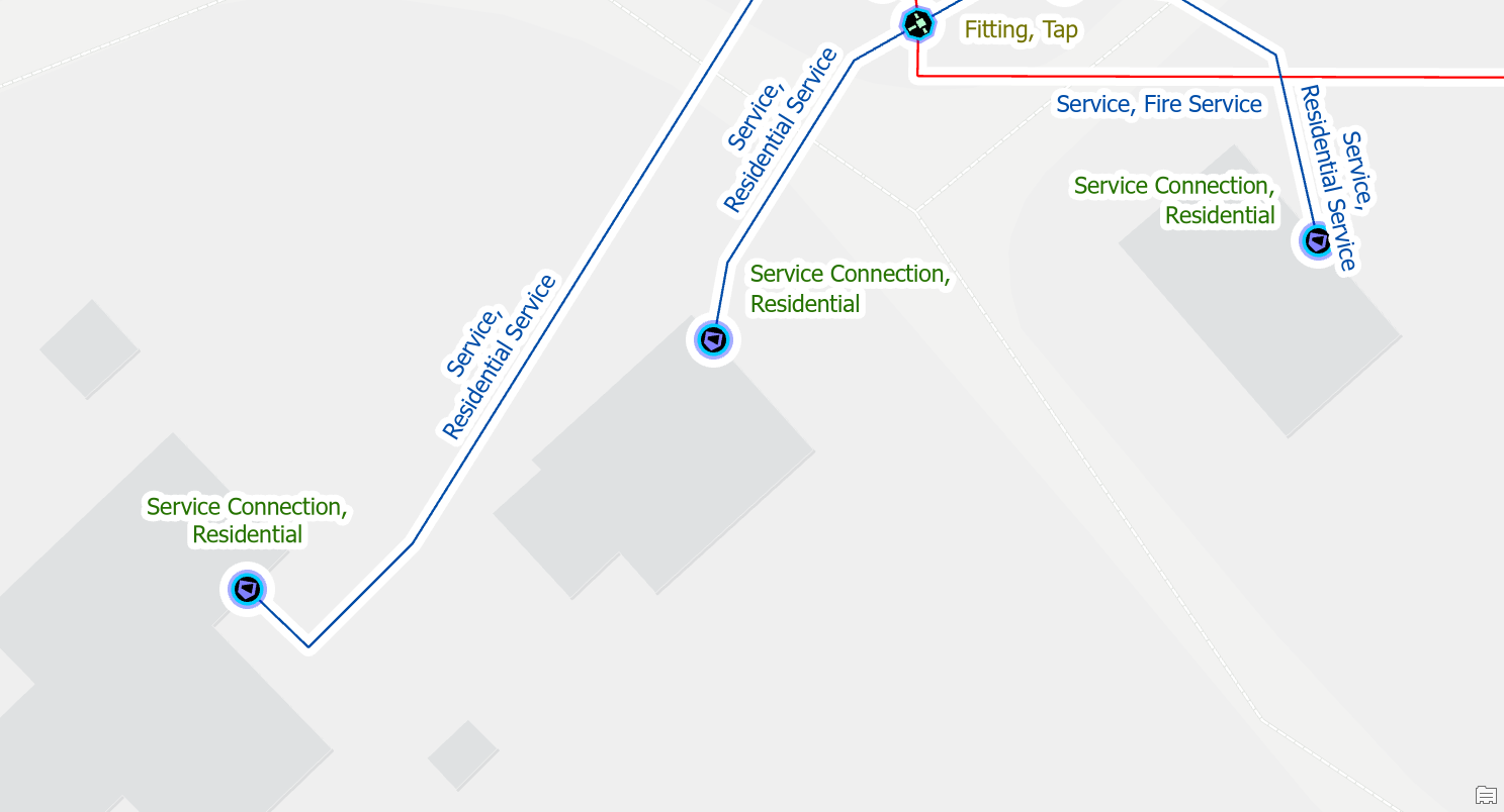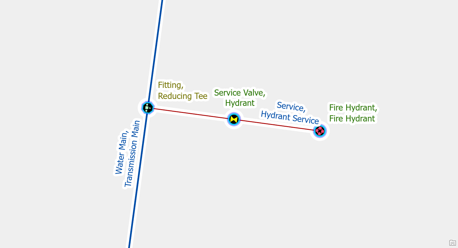 If you have a service valve drawn on top of a service tee, tap, or other fitting you will want to offset the service blow off valve by moving it away from the saddle, along the service line. This will often result in many different errors appearing at the same time: