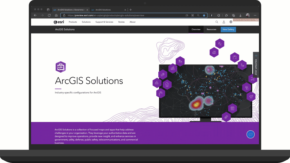 ArcGIS Solutions sit at the intersection of business and technology and provide industry-specific configurations maps and apps that help our users leverage the investment they are making in ArcGIS and location-based data. These extensive capabilities come with ArcGIS and are fully supported much like other capabilities we deliver.
